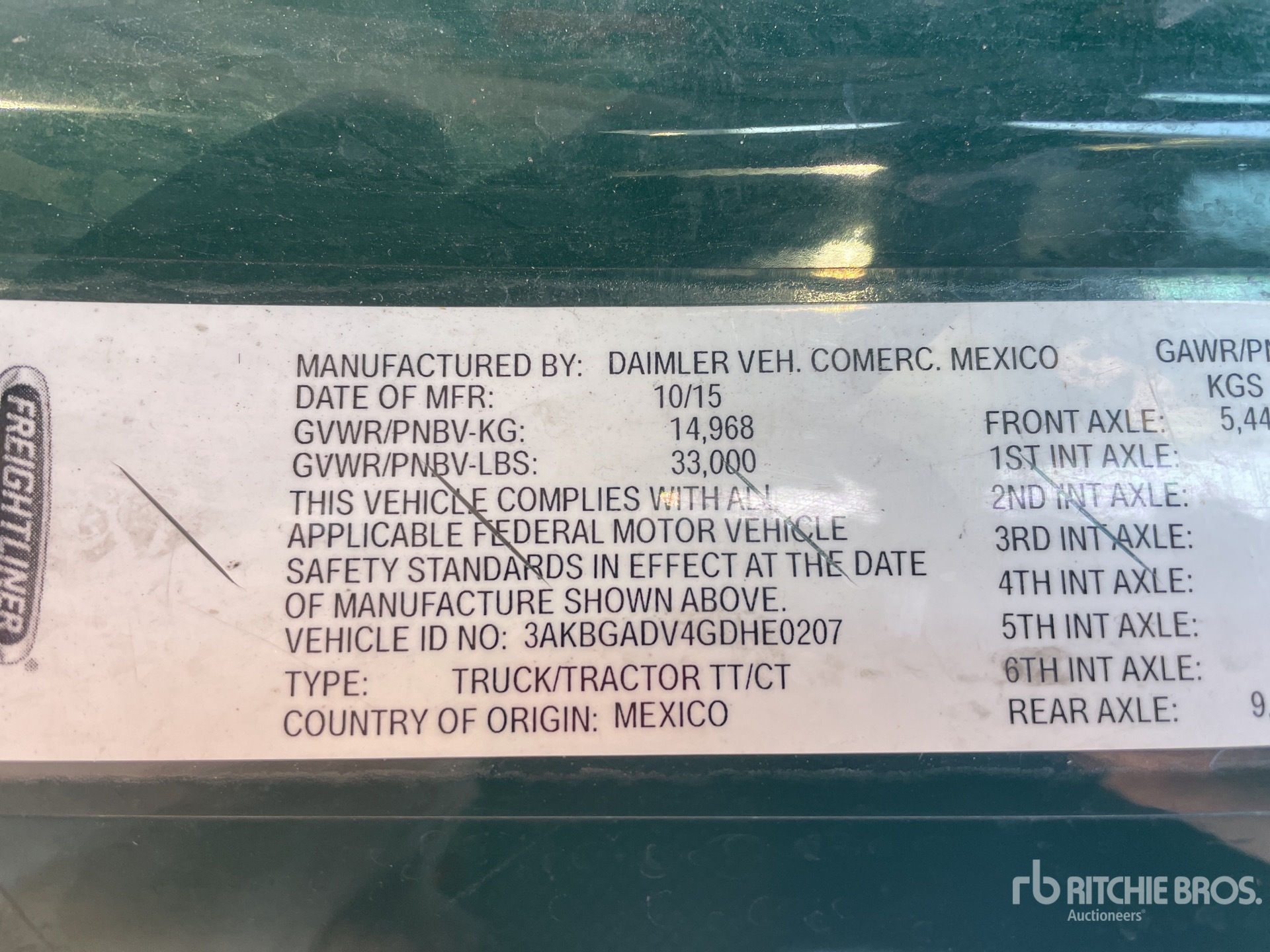 Detroit DD13 410 hp Engine, 2015 US EPA Label, 20907 Engine hrs, Eaton Fuller FM-15E310B-LAS Ultrashift Automatic Transmission, 12000 lb Front Axle, 21000 lb Rears, 33000 lb GVWR, 156 in Wheelbase, Air Suspension, 275/80R22.5, Dual Fuel Tanks