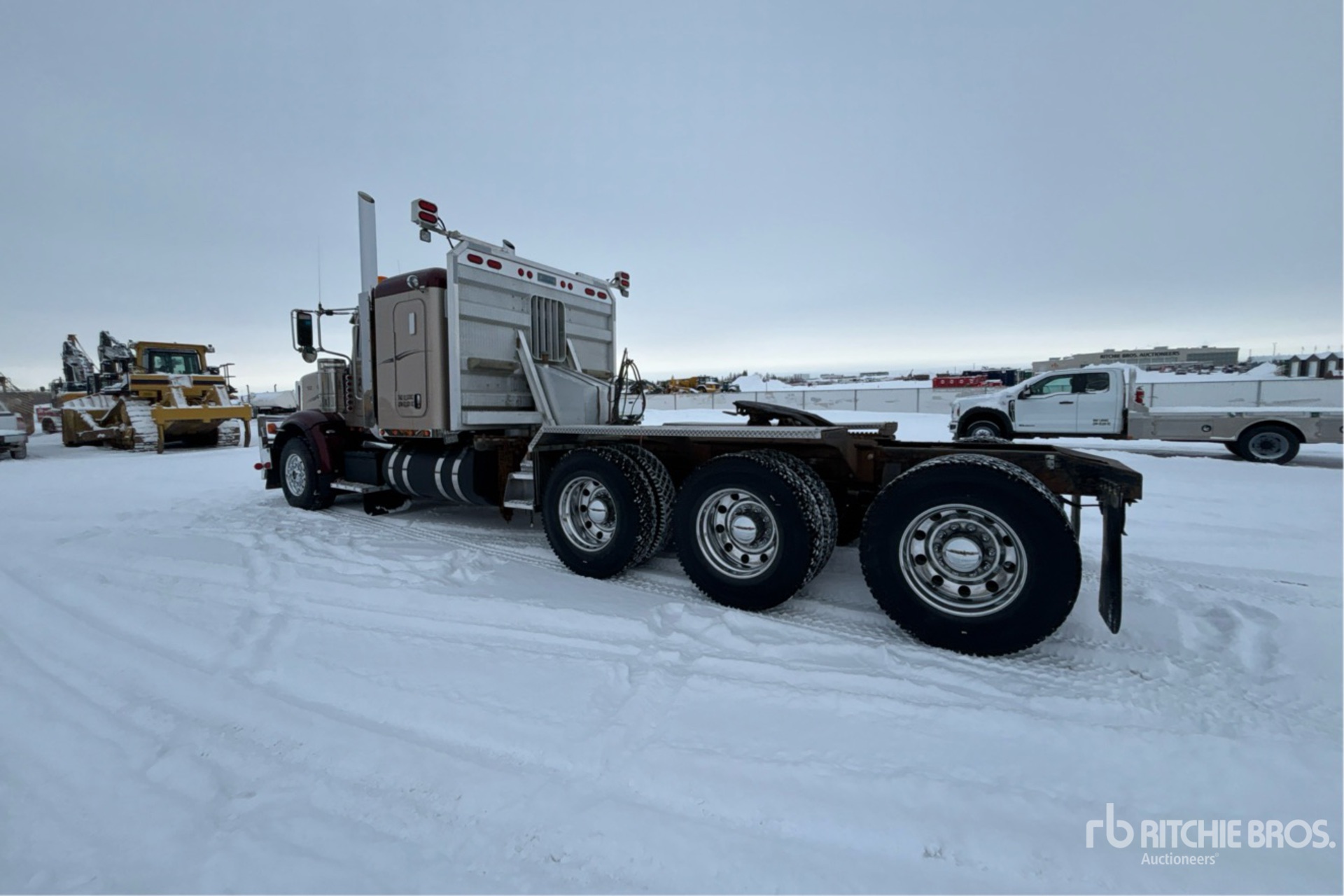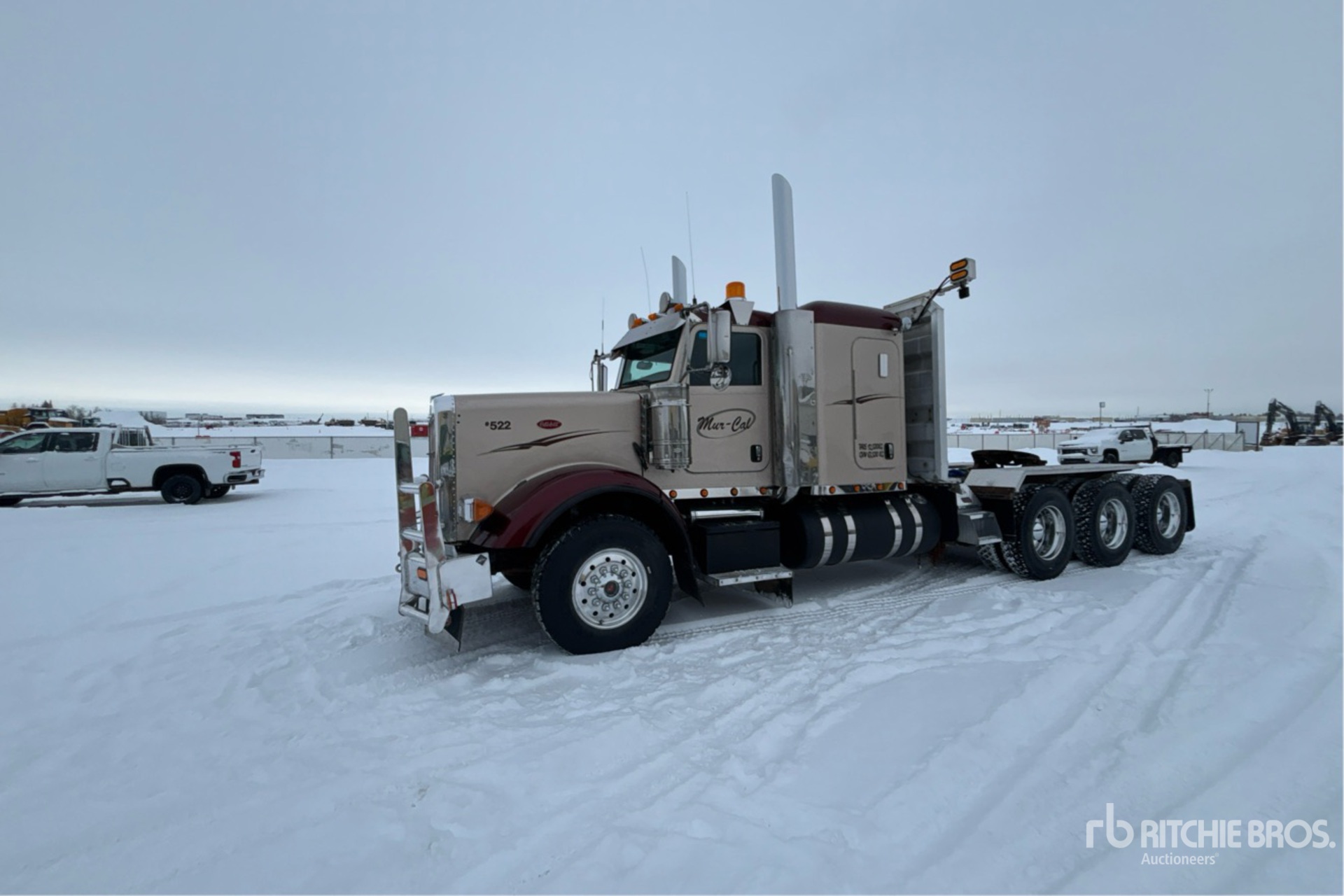 Cummins ISX 600 hp Engine, 2014 US EPA Label, 15990 Engine hrs, Eaton Fuller 18-Speed Manual Transmission, 16000 lb Front Axle, 63999 lb Rears, 80000 lb GVWR, Engine Brake, 58 in Mid Roof Sleeper Cab, Air Suspension, Aluminum Wheels, 385/65R22.5 Front Tires, 11R24.5 Rear Tires, Air Sliding 5th Wheel, Dual Fuel Tanks, Headache Rack