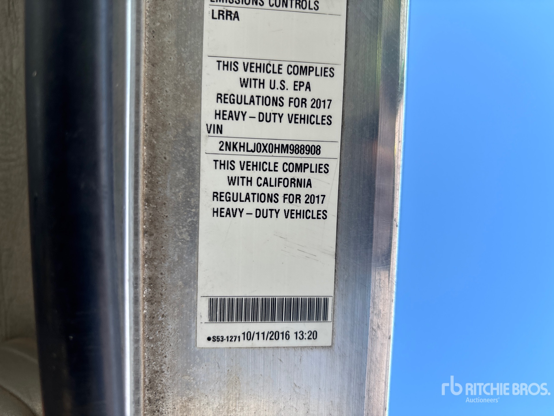 Paccar Diesel Engine, 2016 US EPA Label, 14895 Engine hrs, Engine Brake, Allison 3000 Automatic Transmission, Double Differential Locks, 9072 kg Front Axle, 18144 kg Rears, Spicer DSP41 Drive Axles, 5.29:1 Axle Ratio, 27216 kg GVWR, Air Ride Cab, Aluminum Wheels, 315/80R22.5 Front Tires, 295/75R22.5 Rear Tires, Air Ride Suspension, 268 in Wheelbase, PTO, Warn 20000 lb Winch, Hydraulic Wheel Lift