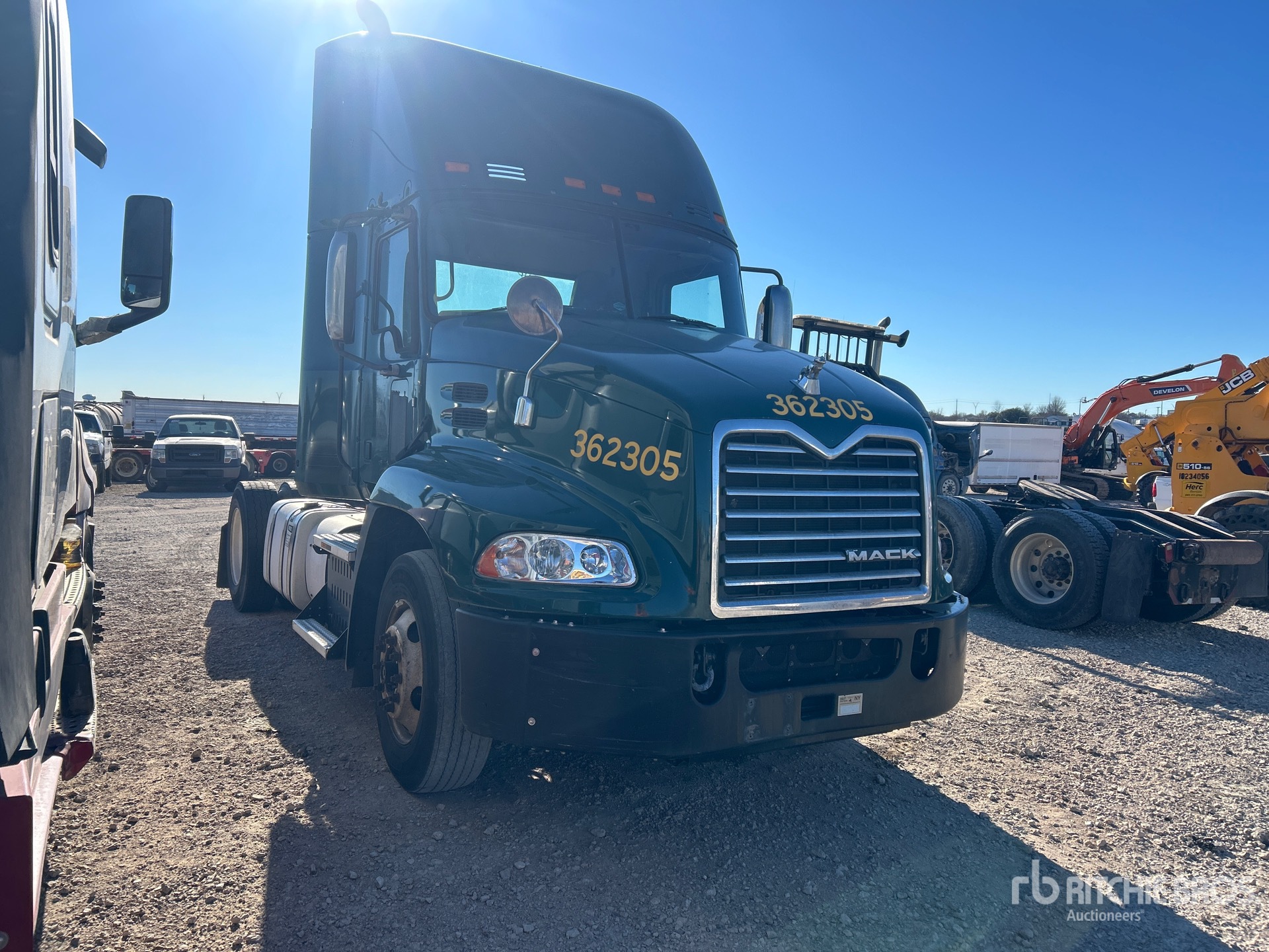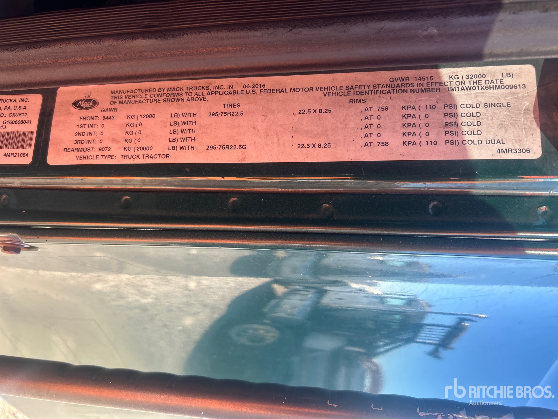 Mack MP7 395 hp Engine, 2016 US EPA Label, 21267 Engine hrs, Mack mDrive 12-Speed Automated Transmission 12000 lb Front Axle, 20000 lb Rears, 32000 lb GVWR, 158 in Wheelbase, Air Suspension, 275/80R22.5 Front Tires, 295/75R22.5 Rear Tires, Ballrace 5th Wheel, Dual Fuel Tanks