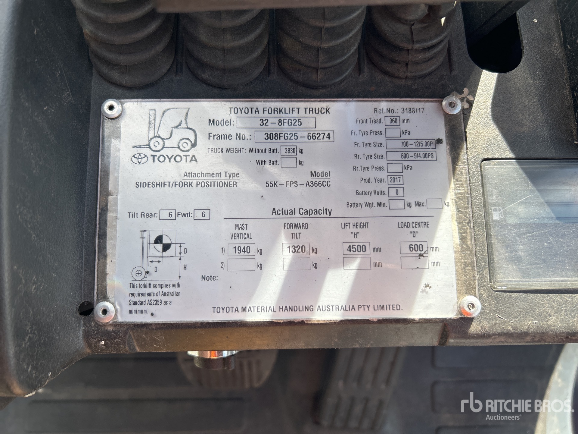 The detailed equipment information is limited in scope, and Ritchie Bros. Auctioneers has not inspected any aspects or components of the equipment other than those expressly set forth herein. Unless expressly stated, we make no representations or warranties, express or implied, concerning the equipment or its components, including without limitation any representations or warranties concerning functionality, conformity or compliance with any safety standard or requirement of any applicable authority or regulatory body, fitness for any particular purpose, or merchantability. You are strongly advised to perform your own detailed inspection of the equipment prior to bidding.