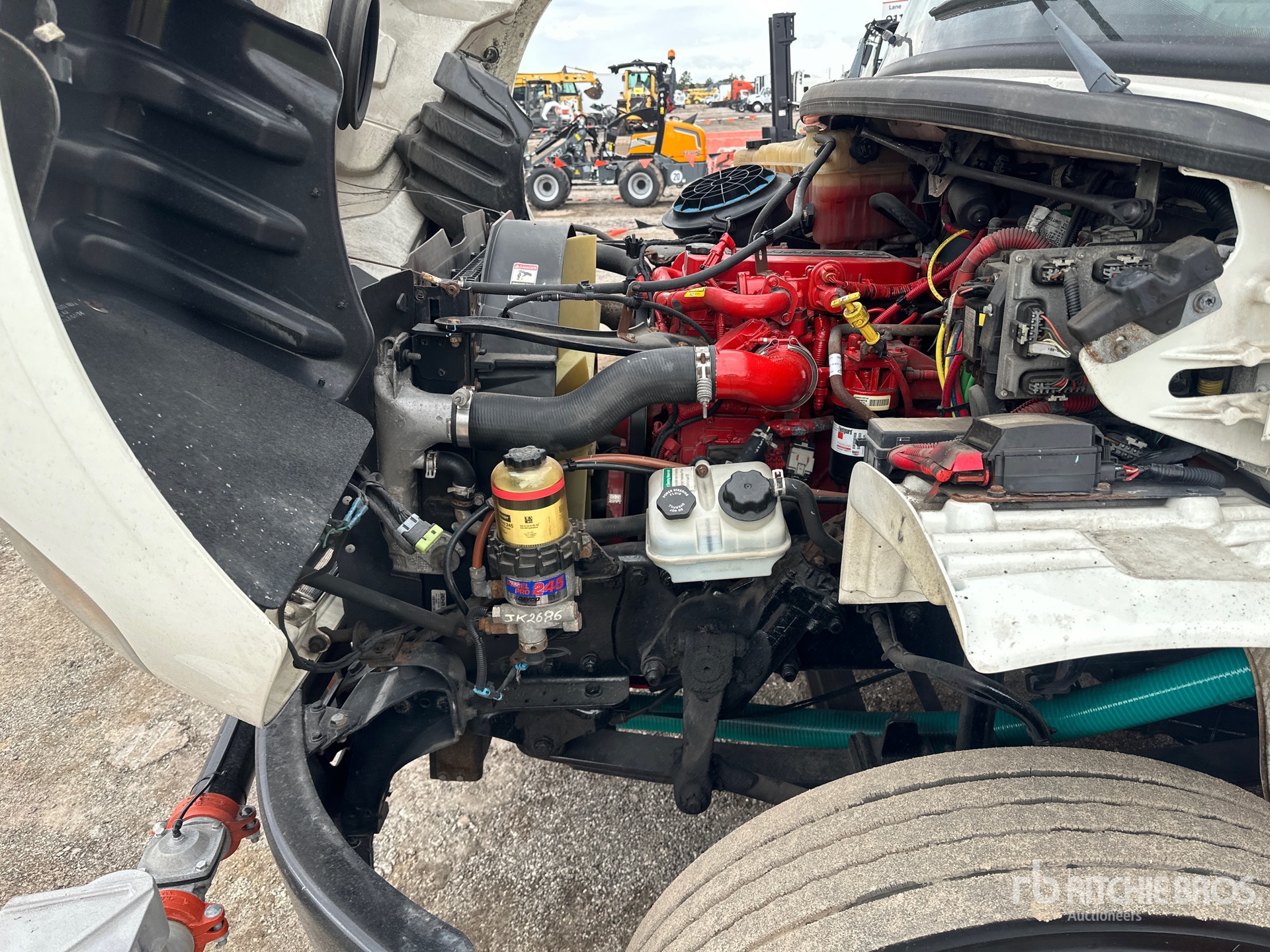 Cummins B6.7 6 Cylinder 6.7 L Diesel 250 hp Engine, 2018 US EPA Label, 7848 Engine hrs, Allison 3000 Automated Transmission, 12000 lb Front Axle, 21000 lb Rears, 5.56:1 Axle Ratio, 33000 lb GVWR, Aluminum Outer Wheels, 11R22.5, Air Ride Suspension, 204 in Wheelbase, PTO, 2500 gal Steel Tank, 6 ft 6 in, Spray Bar, Front Spray, Rear Spray, Side Spray