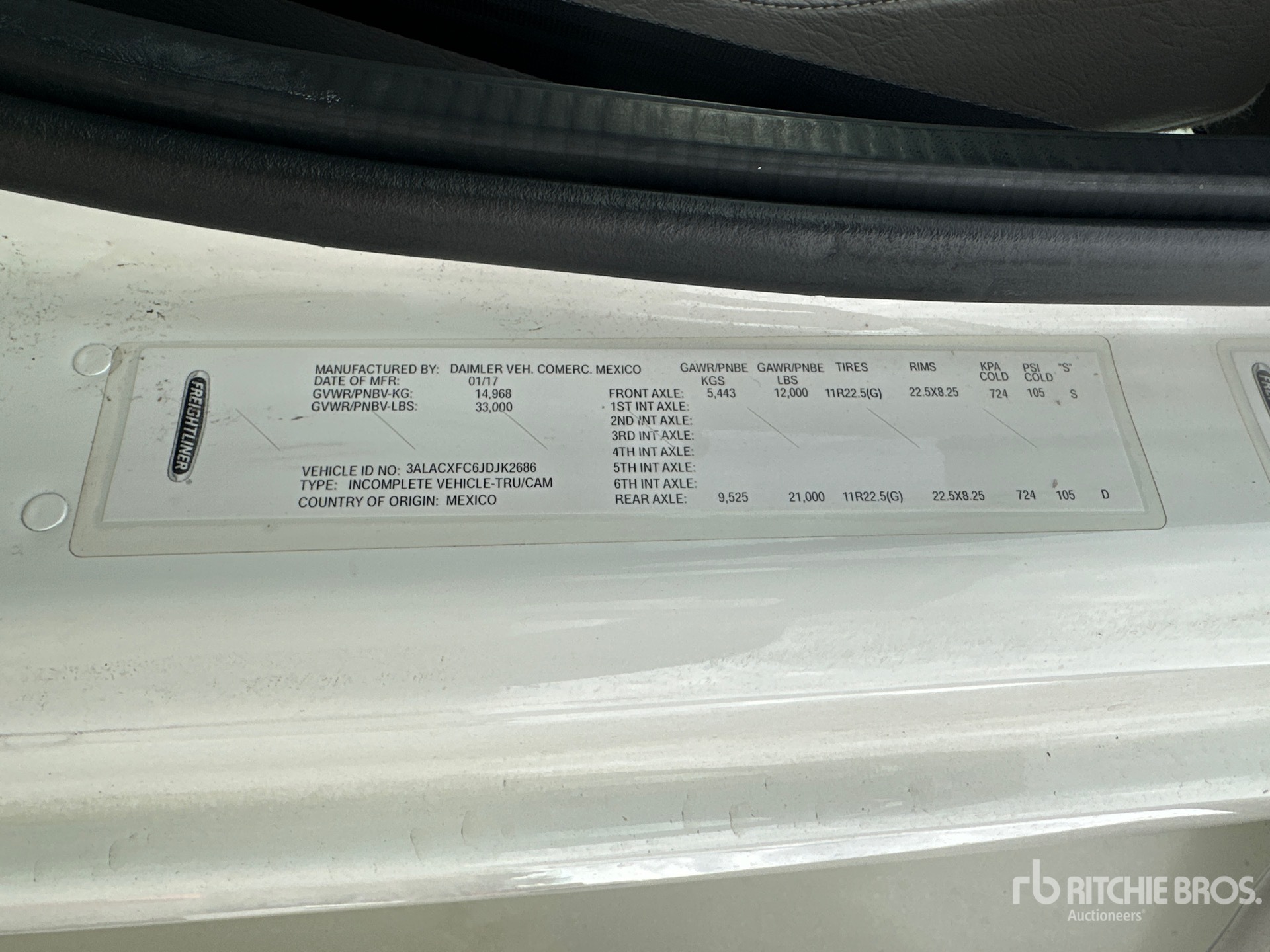 The detailed equipment information is limited in scope, and Ritchie Bros. Auctioneers has not inspected any aspects or components of the equipment other than those expressly set forth herein. Unless expressly stated, we make no representations or warranties, express or implied, concerning the equipment or its components, including without limitation any representations or warranties concerning functionality, conformity or compliance with any safety standard or requirement of any applicable authority or regulatory body, fitness for any particular purpose, or merchantability. You are strongly advised to perform your own detailed inspection of the equipment prior to bidding.