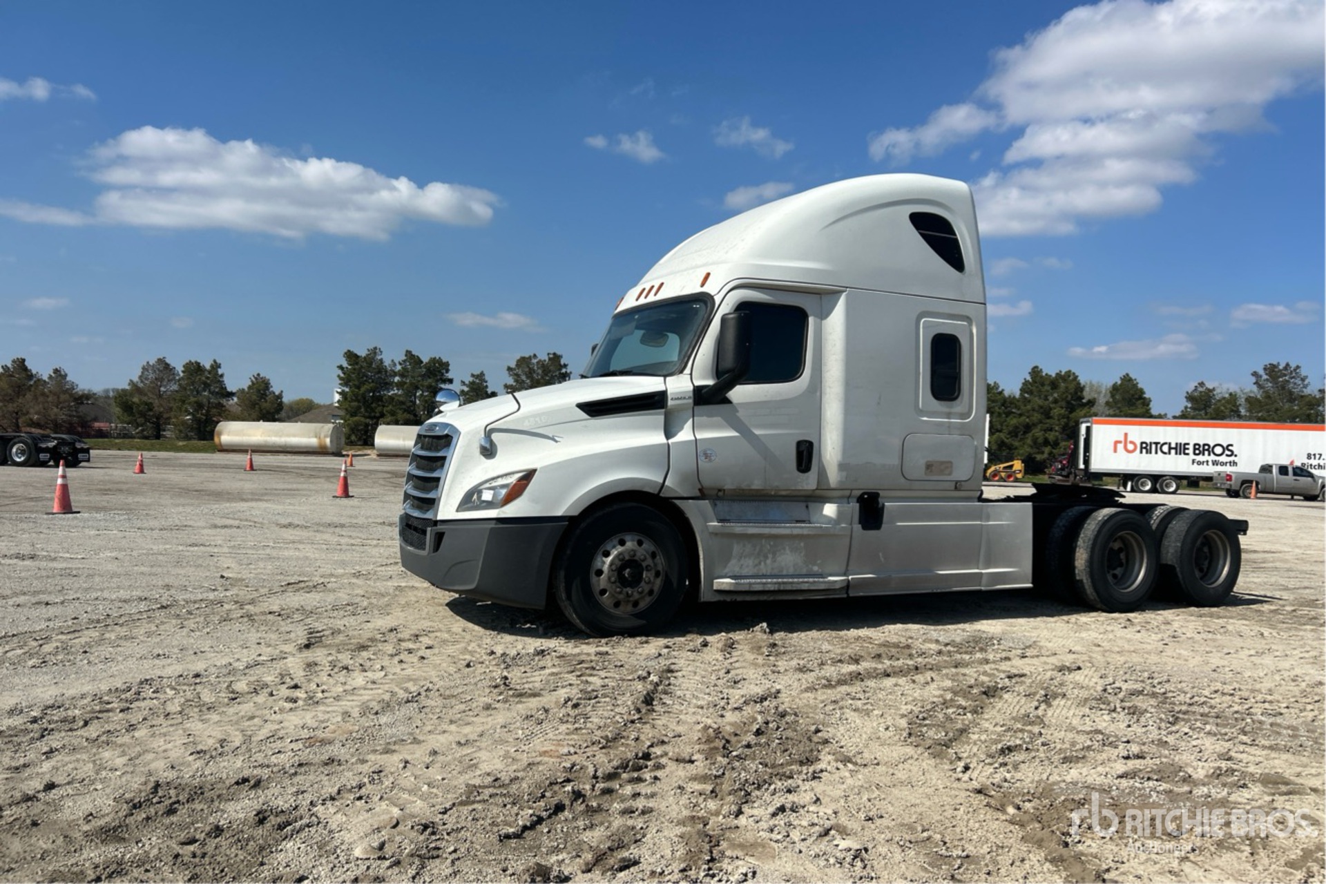Located in Lane 36 Spot 20, Detroit DD15 455 hp Engine, 20405 Engine hrs, Detroit DT12-1650-OH1 12-Speed Automated Transmission, 13300 lb Front Axle, 40000 lb Rears, 53300 lb GVWR, Engine Brake, 70 in High Rise Sleeper Cab, Bunk Beds, Auxiliary Power Unit, 233 in Wheelbase, Air Suspension, Aluminum Wheels, 295/75R22.5, Air Sliding 5th Wheel, Dual Fuel Tanks