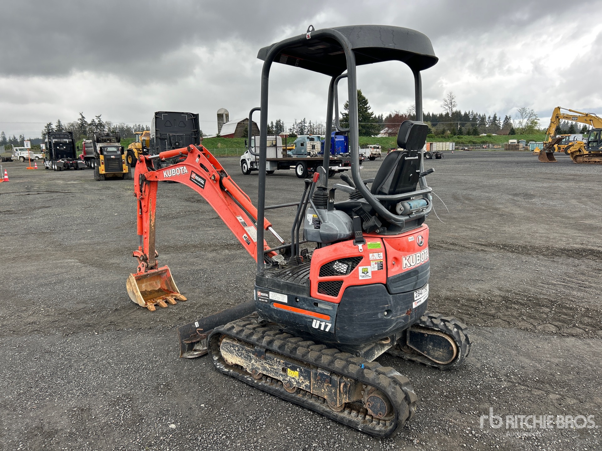Swing Boom, 3 ft 1 in Stick, Auxiliary Hydraulic Plumbing, Backfill Blade, 9 in Rubber Tracks, Expandable Width Tracks, 17 in Digging Bucket