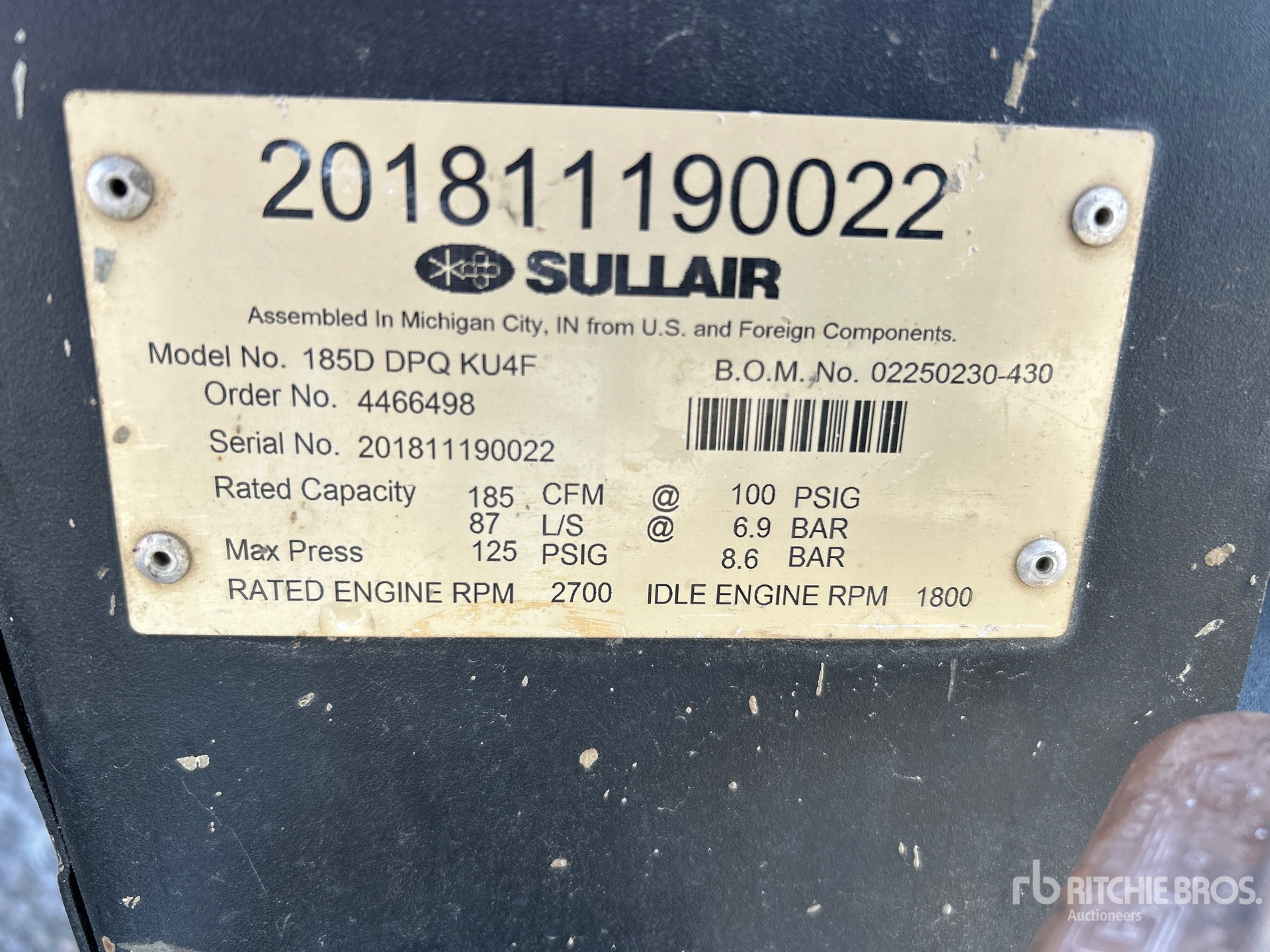 2018 Sullair 185DPQ-KU-T3 Mobile Air Compressor