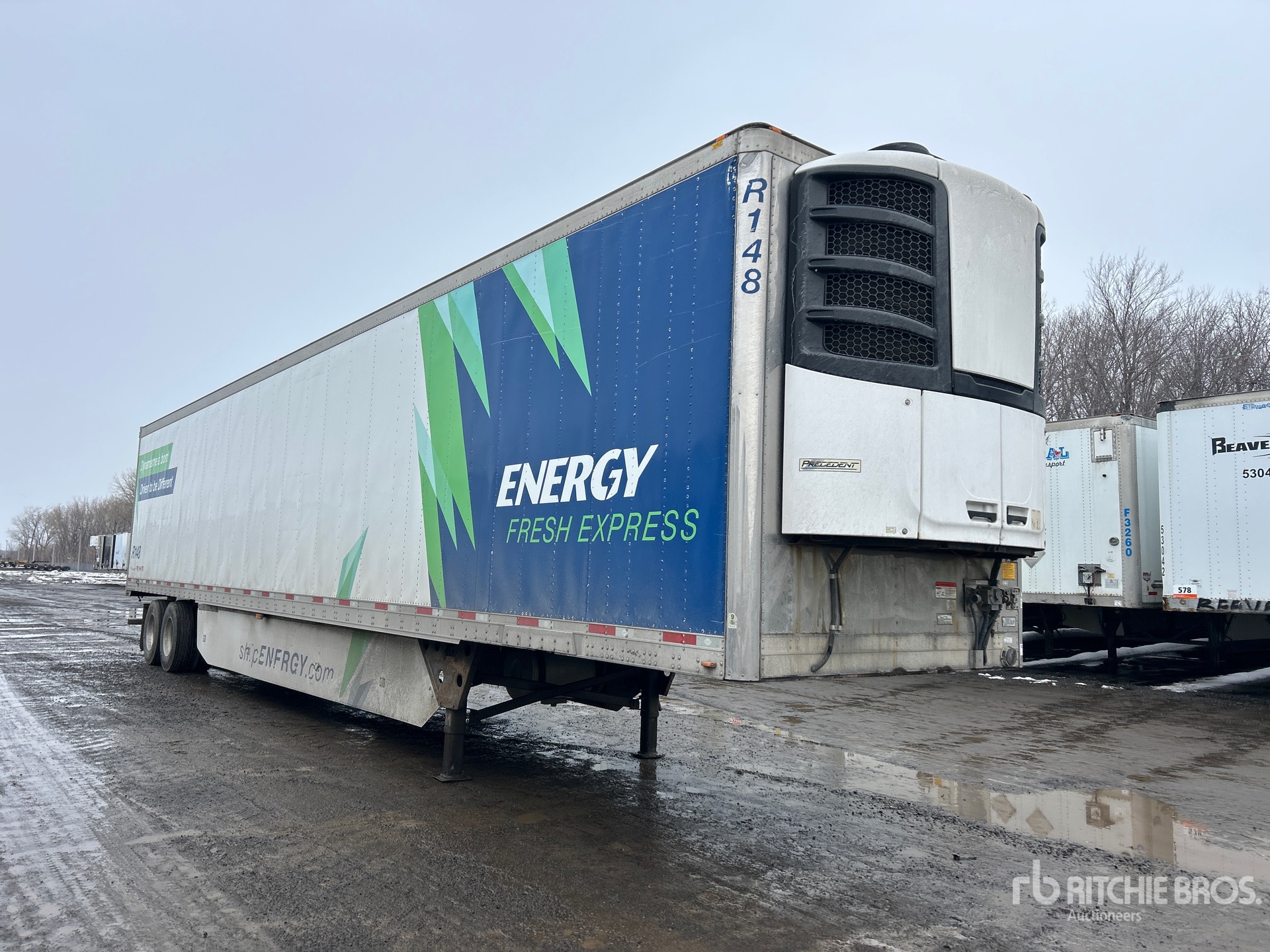 Thermo King C-600 Refrigeration Unit, Aluminum/Steel Combination Frame, Air Ride Sliding Suspension, Side Skirts, Ducted Floor, Swing Door, 11R22.5 Tires, 29500 kg GVWR