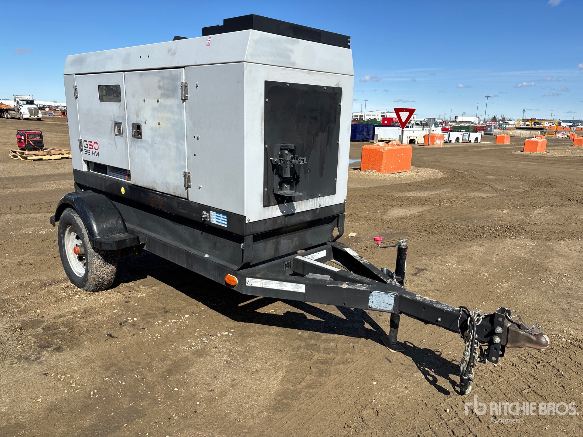 John Deere 4 Cylinder Diesel Engine, 48 kVA/38 kW Rated 3 Phase Output, 240 V / 480 V Rated Voltage, Ball Hitch Carrier Trailer