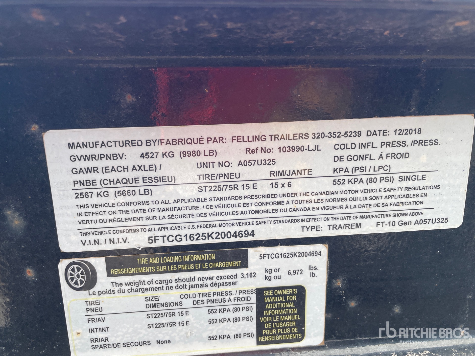 The detailed equipment information is limited in scope, and Ritchie Bros. Auctioneers has not inspected any aspects or components of the equipment other than those expressly set forth herein. Unless expressly stated, we make no representations or warranties, express or implied, concerning the equipment or its components, including without limitation any representations or warranties concerning functionality, conformity or compliance with any safety standard or requirement of any applicable authority or regulatory body, fitness for any particular purpose, or merchantability. You are strongly advised to perform your own detailed inspection of the equipment prior to bidding.