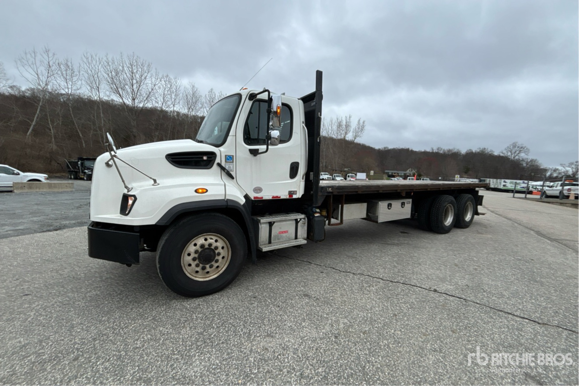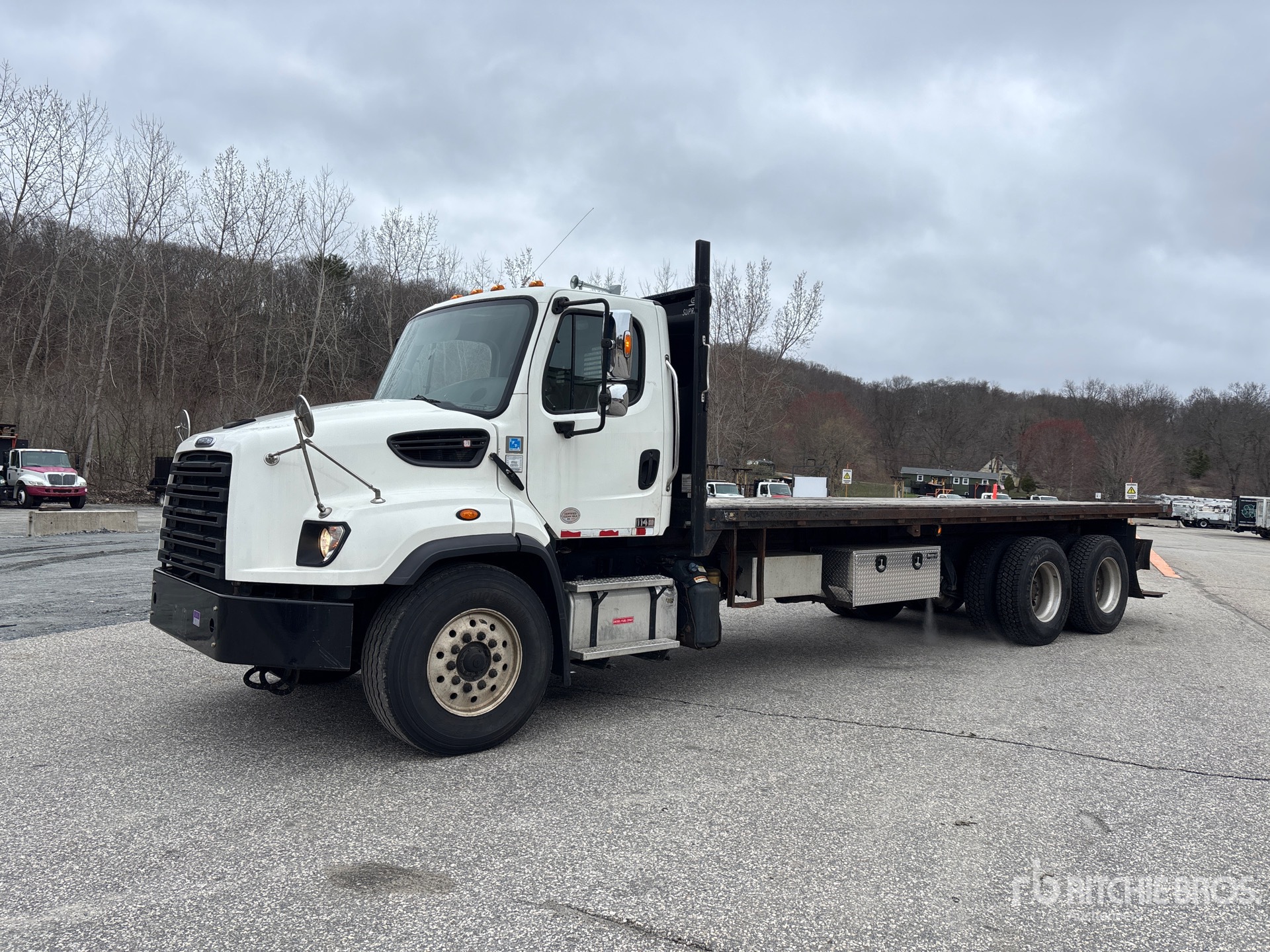 Detroit DD13 6 Cylinder 12.8 L Diesel 410 hp Engine, 2018 US EPA Label, CARB Compliant, Requires Diesel Exhaust Fluid, 3 Engine hrs, Engine Brake, Allison 4500 Automatic Transmission, 18000 lb Front Axle, 40000 lb Rears, Meritor MT-40-14X Drive Axles, 3.70:1 Axle Ratio, 58000 lb GVWR, Air Ride Cab, Aluminum Rear Wheels, 385/65R22.5 Front Tires, 11R22.5 Rear Tires, Double Frame, Airliner Air Ride Suspension, 275 in Wheelbase, 24 ft x 96 in Bed, Forklift Mount Kit