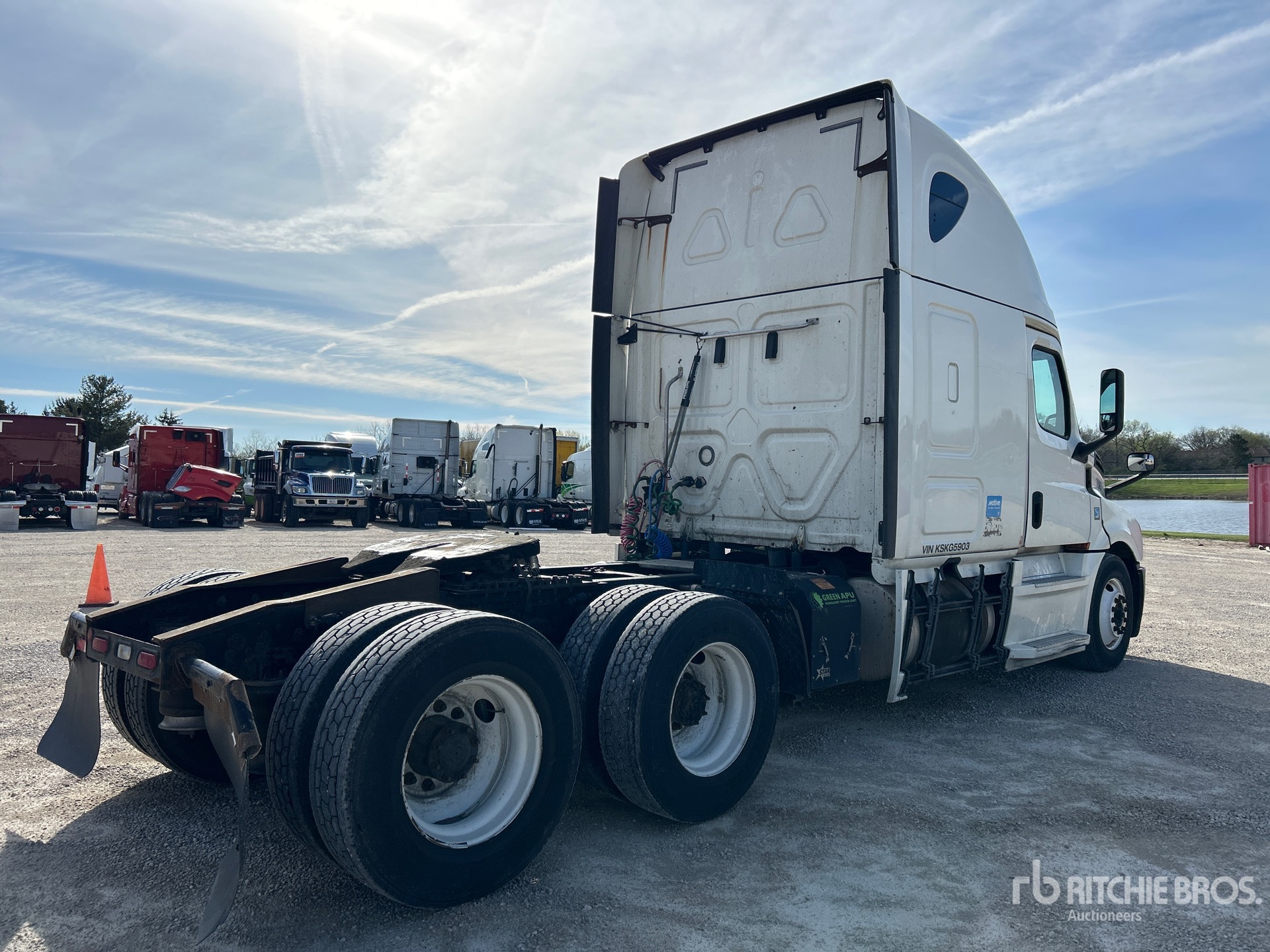 Detroit DD15 Engine, 2019 US EPA Label, 15858 Engine hrs, Detroit DT12-1550-OH1 12-Speed Automated Transmission, 13220 lb Front Axle, 40000 lb Rears, 53220 lb GVWR, Engine Brake, 70 in High Rise Sleeper Cab, Bunk Beds, 231 in Wheelbase, Air Suspension, 275/80R22.5 Front Tires, 295/75R22.5 Rear Tires, Air Sliding 5th Wheel, Dual Fuel Tanks