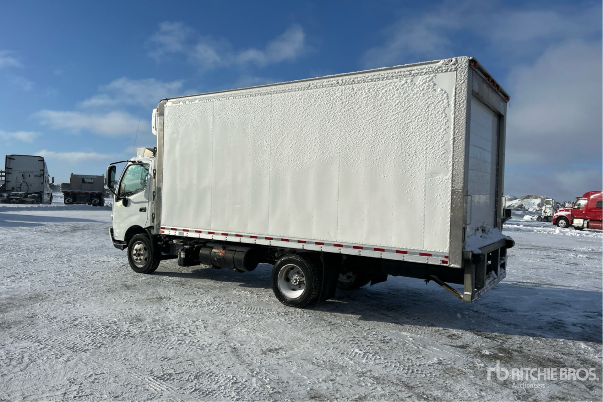Hino J05E-TP 6 Cylinder Diesel 210 hp Engine, 2018 US EPA Label, CARB Compliant, Requires Diesel Exhaust Fluid, Automatic Transmission, 7270 lb Front Axle, 13660 lb Rears, 19500 lb GVWR, 215/75R17.5 Front Tires, 215/75R17.5 Rear Tires, Spring Suspension, 150 in Wheelbase, Carrier Reefer Unit, 10812 Reefer Engine Hours:, Morgan 18 ft x 96 in Wide x 86 in High Body