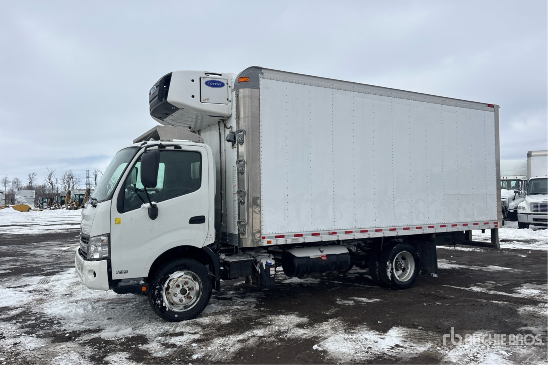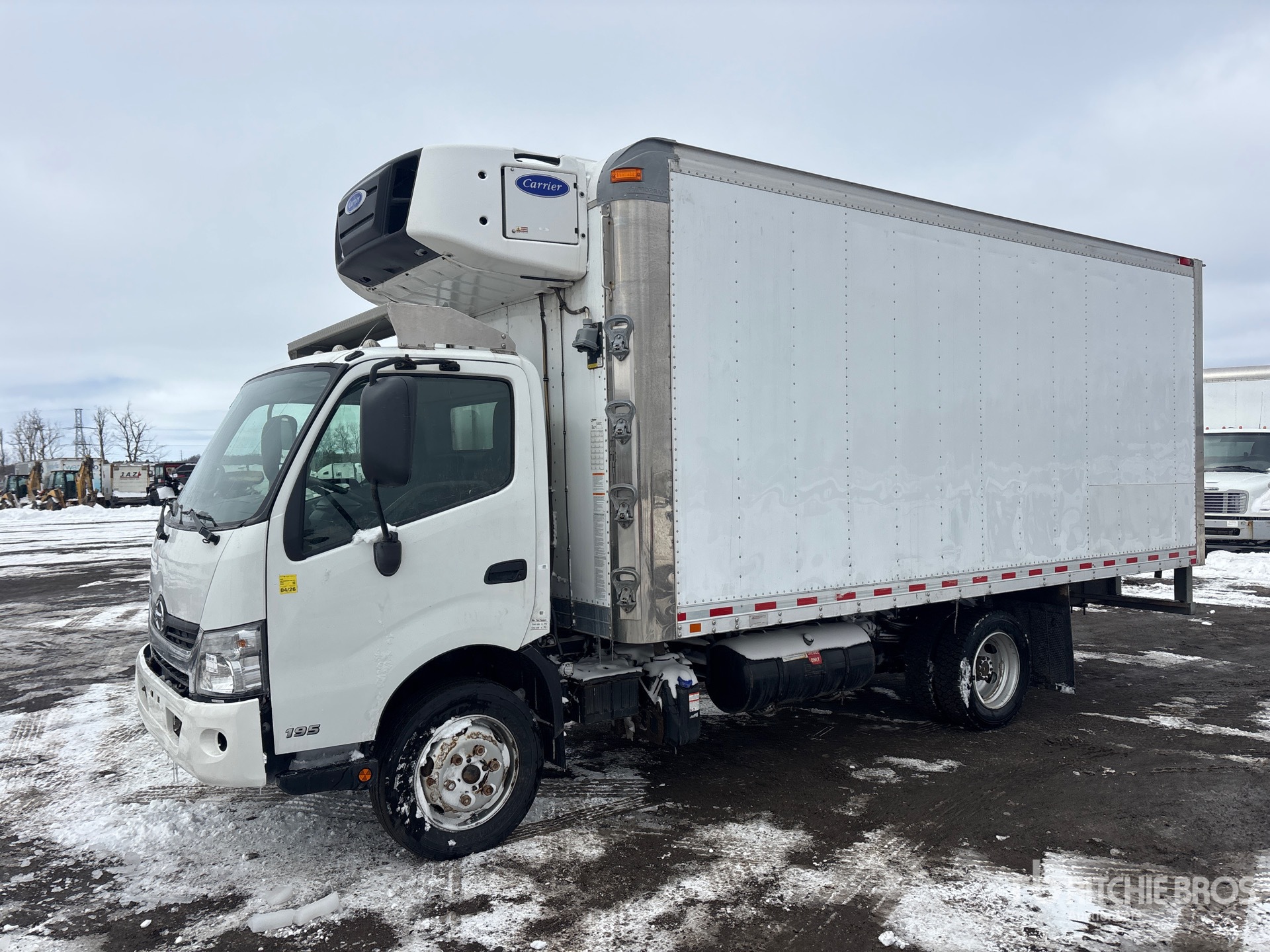 Hino J05E-TP 4 Cylinder Diesel 210 hp Engine, 2018 US EPA Label, CARB Compliant, Requires Diesel Exhaust Fluid, Automatic Transmission, 7270 lb Front Axle, 13660 lb Rears, 19500 lb GVWR, 225/70R19.5, Spring Suspension, 152 in Wheelbase, Carrier Supra 660 Reefer Unit, 1263 Reefer Total Hours:, Morgan 18 ft x 96 in Wide x 91 in High Body