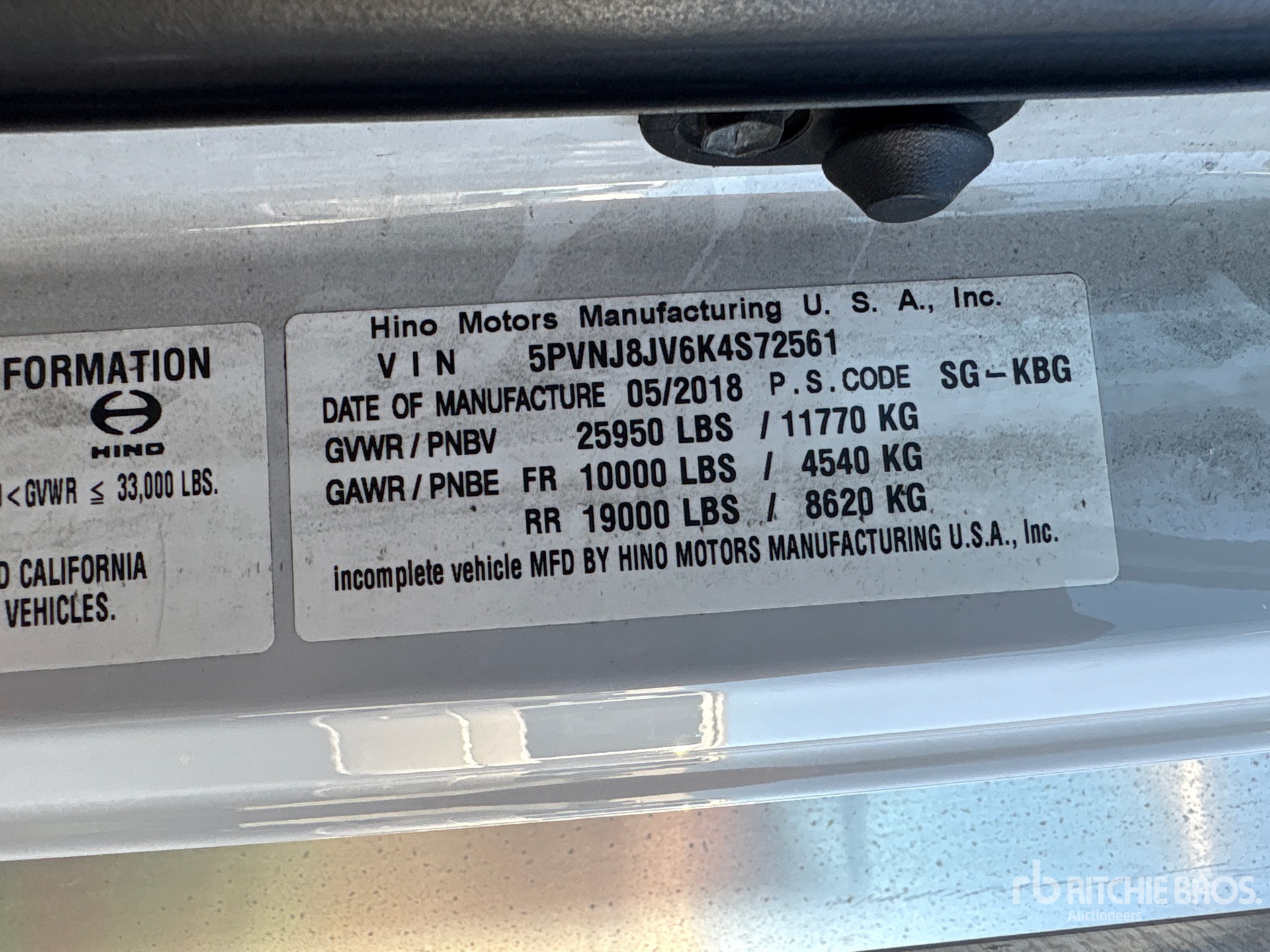 The detailed equipment information is limited in scope, and Ritchie Bros. Auctioneers has not inspected any aspects or components of the equipment other than those expressly set forth herein. Unless expressly stated, we make no representations or warranties, express or implied, concerning the equipment or its components, including without limitation any representations or warranties concerning functionality, conformity or compliance with any safety standard or requirement of any applicable authority or regulatory body, fitness for any particular purpose, or merchantability. You are strongly advised to perform your own detailed inspection of the equipment prior to bidding.