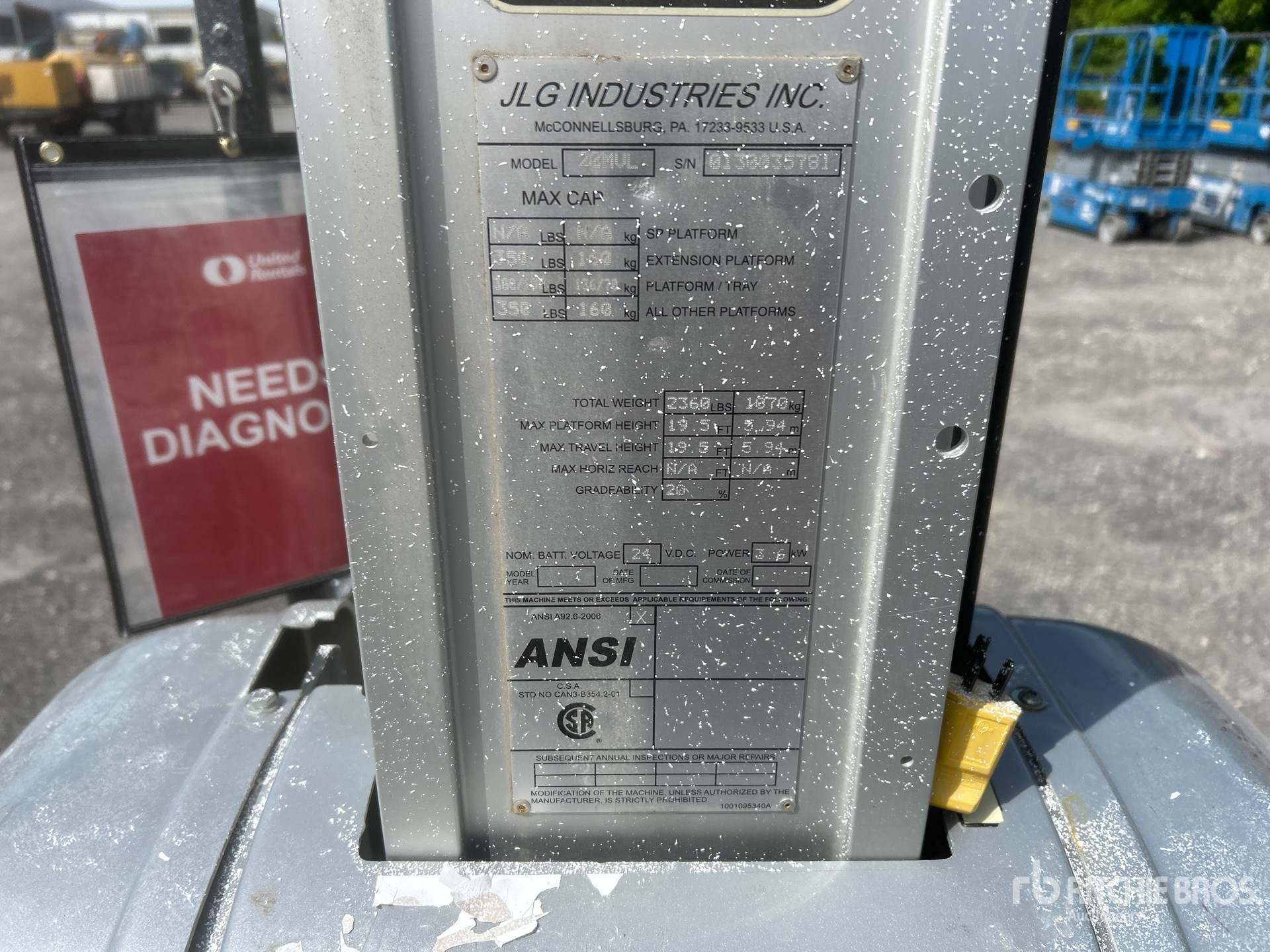 19 ft 5 in Max Platform Height, 350 lb Max Weight Capacity, Non-Marking Tires, Upper Control Box, Equipment-From-United-Rentals