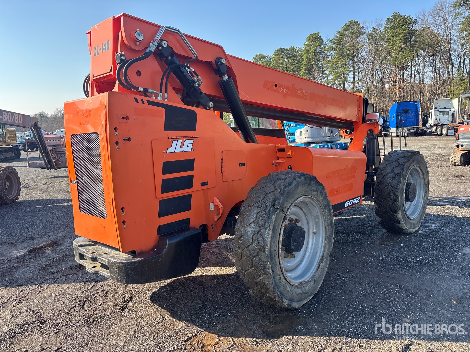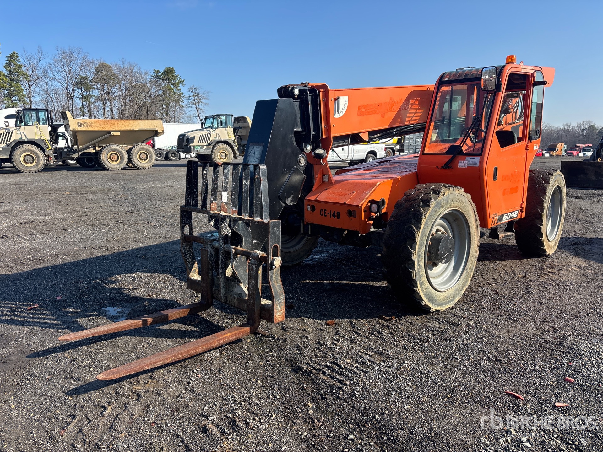 42 ft Max Lift Height, 6000 lb Max Lift Capacity, 48 in Forks, Manual Coupler, Frame Leveling, 370/75-28 Tires