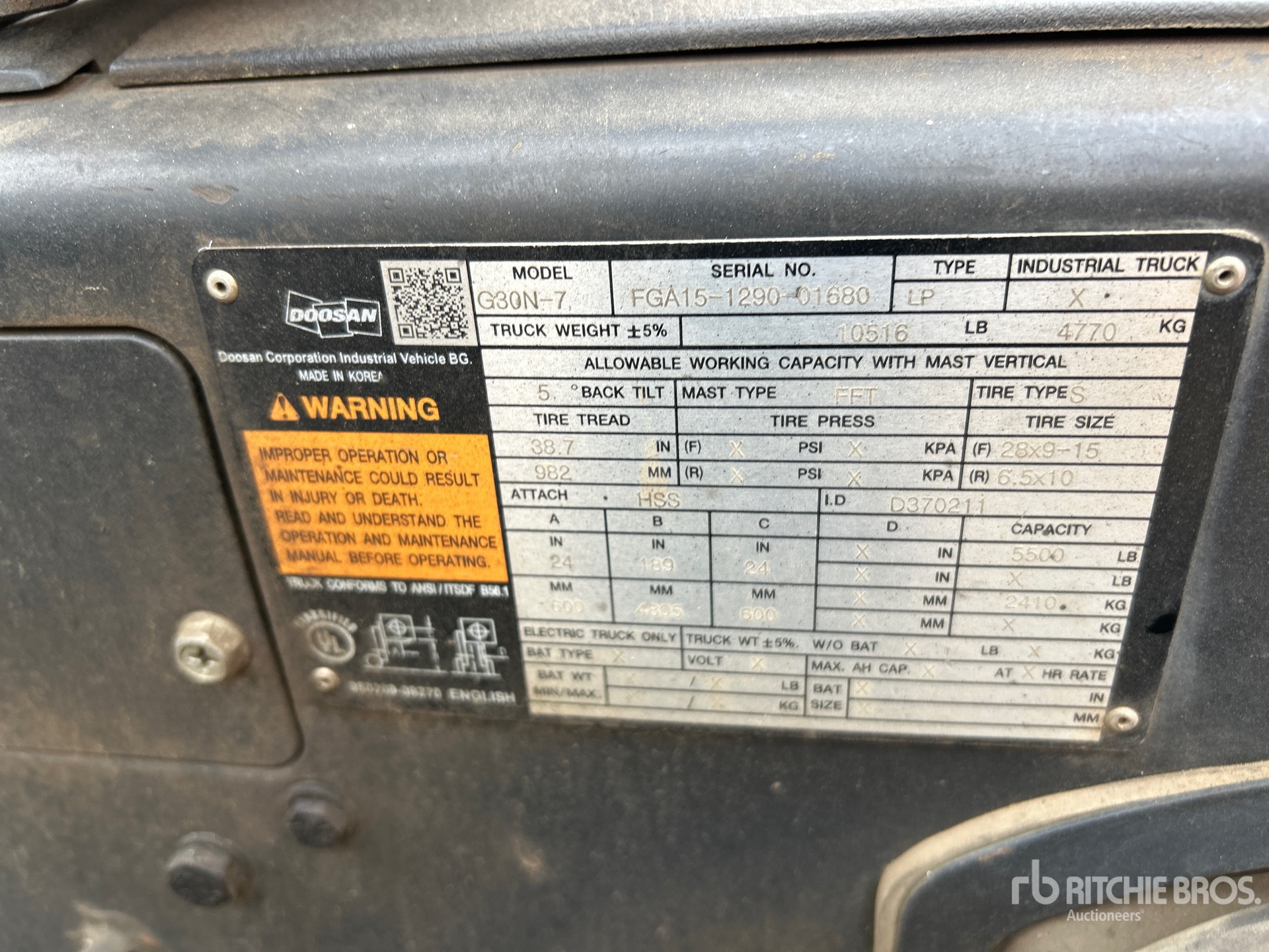 The detailed equipment information is limited in scope, and Ritchie Bros. Auctioneers has not inspected any aspects or components of the equipment other than those expressly set forth herein. Unless expressly stated, we make no representations or warranties, express or implied, concerning the equipment or its components, including without limitation any representations or warranties concerning functionality, conformity or compliance with any safety standard or requirement of any applicable authority or regulatory body, fitness for any particular purpose, or merchantability. You are strongly advised to perform your own detailed inspection of the equipment prior to bidding.