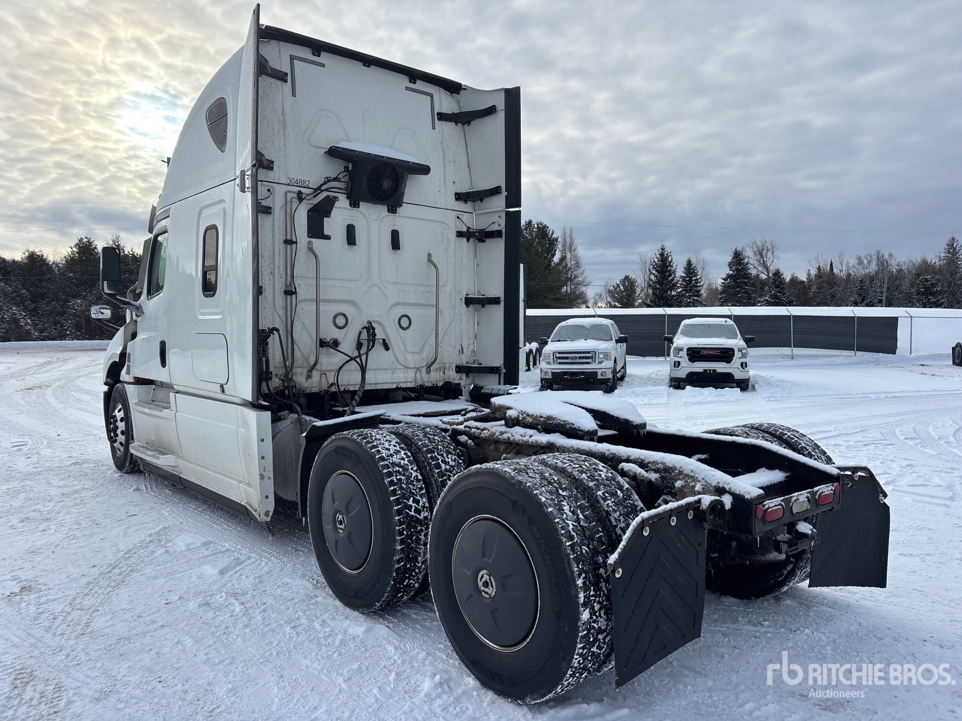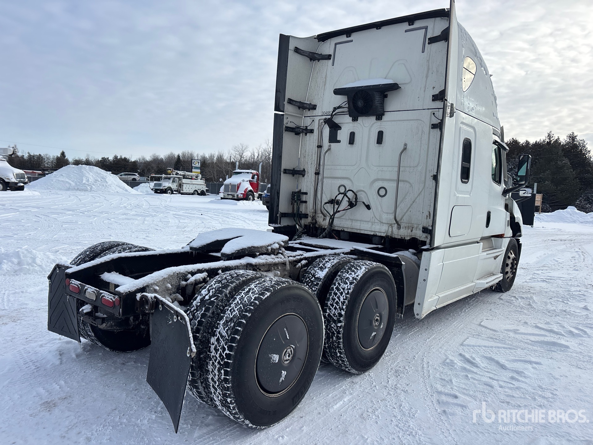 Detroit DD15 505 hp Engine, 2019 US EPA Label, 14819 Engine hrs, Detroit DT12-1750-DH1 12-Speed Automated Transmission, 13200 lb Front Axle, 40000 lb Rears, 53220 lb GVWR, Engine Brake, Double Differential Locks, 70 in High Rise Sleeper Cab, Bunk Beds, 229 in Wheelbase, Air Suspension, Aluminum Wheels, 11R22.5, Air Sliding 5th Wheel, Dual Fuel Tanks, Professionally-Maintained-Fleet-Vehicle-Pag