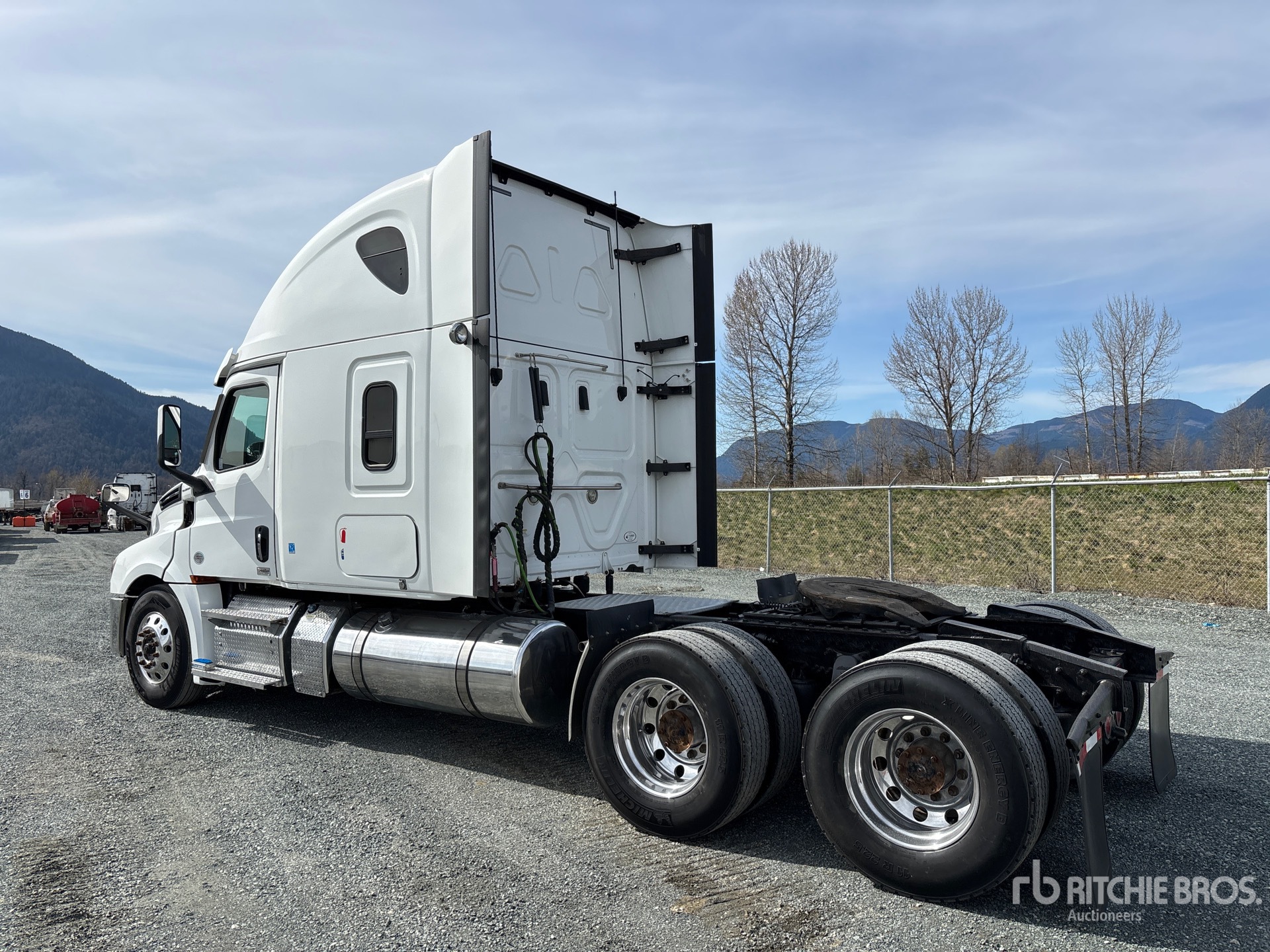 Detroit DD15 505 hp Engine, 13975 Engine hrs, Detroit DT12-1650-OH1 12-Speed Automated Transmission, 12350 lb Front Axle, 40000 lb Rears, 52350 lb GVWR, Engine Brake, Differential Lock, 70 in High Rise Sleeper Cab, Bunk Beds, Bunk Heater, 232 in Wheelbase, Air Suspension, Aluminum Wheels, 11R22.5, Air Sliding 5th Wheel, Dual Fuel Tanks, Lowboy Ramps