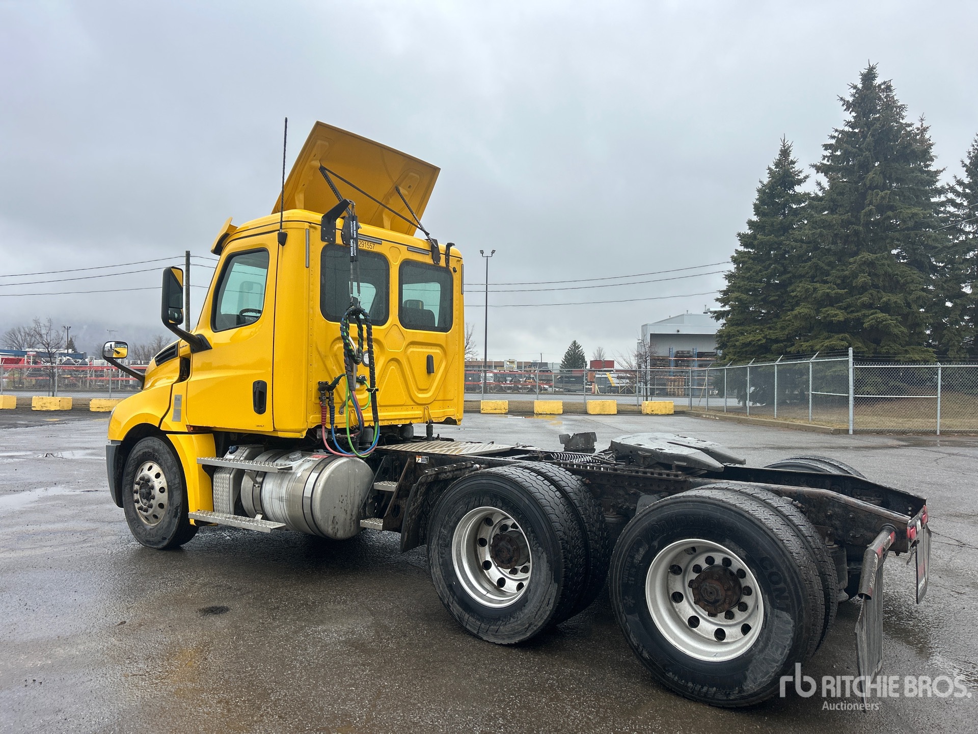 Detroit DD13 525 hp Engine, 2019 US EPA Label, 8346 Engine hrs, Detroit DT12-1650-OH1 12-Speed Automated Transmission, 12000 lb Front Axle, 40000 lb Rears, 52000 lb GVWR, Engine Brake, Differential Lock, 180 in Wheelbase, Air Suspension, Aluminum Wheels, 11R22.5, Air Sliding 5th Wheel, Dual Fuel Tanks, "NOTICE-TO-US-BIDDERS: this asset is likely exempt from US import tariffs as it was manufactured in the US. Bidders are responsible for confirming with their customs broker."