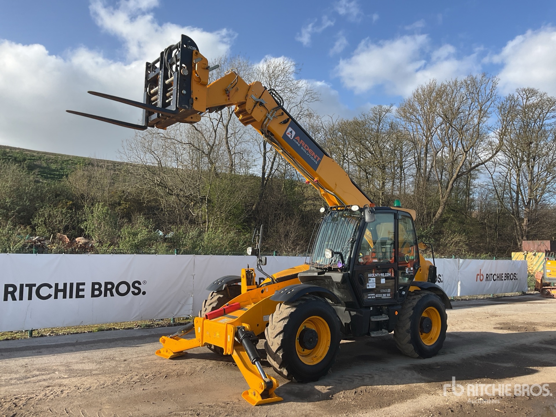 Enclosed Cab, Air Conditioner, Load Moment Indicator, 14 m Max Lift Height, 4000 kg Max Lift Capacity, 1050 mm Forks, Fork Positioner, Manual Coupler, Outriggers, Frame Leveling, Auxiliary Hydraulic Plumbing, 400/80-24 Tires