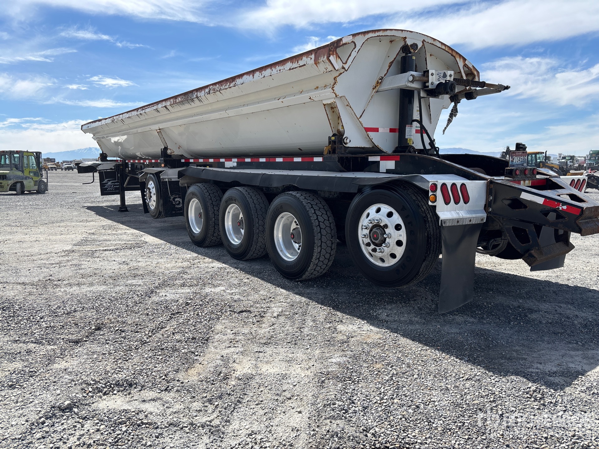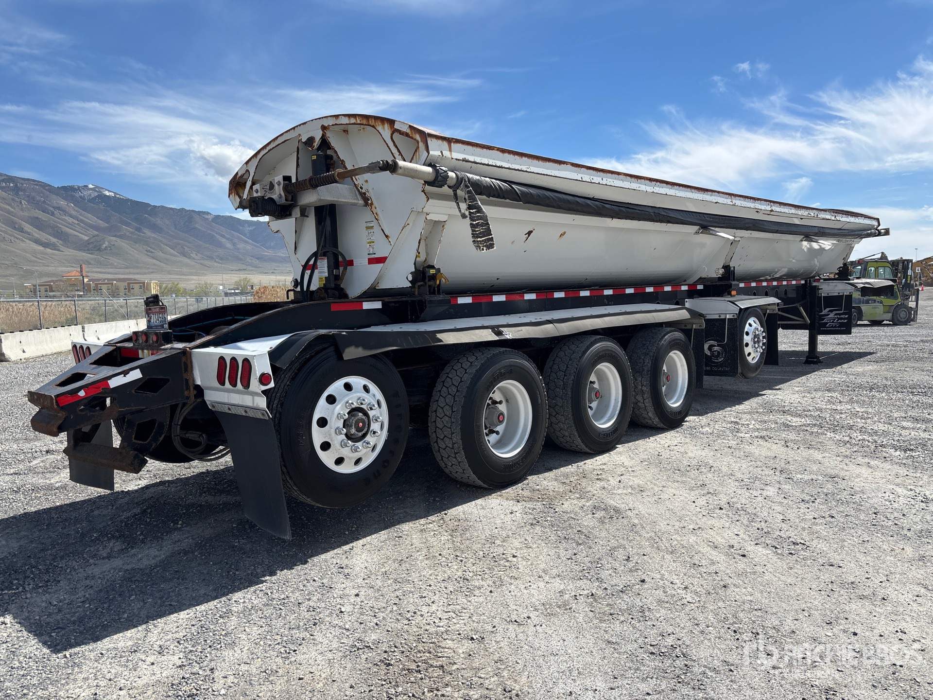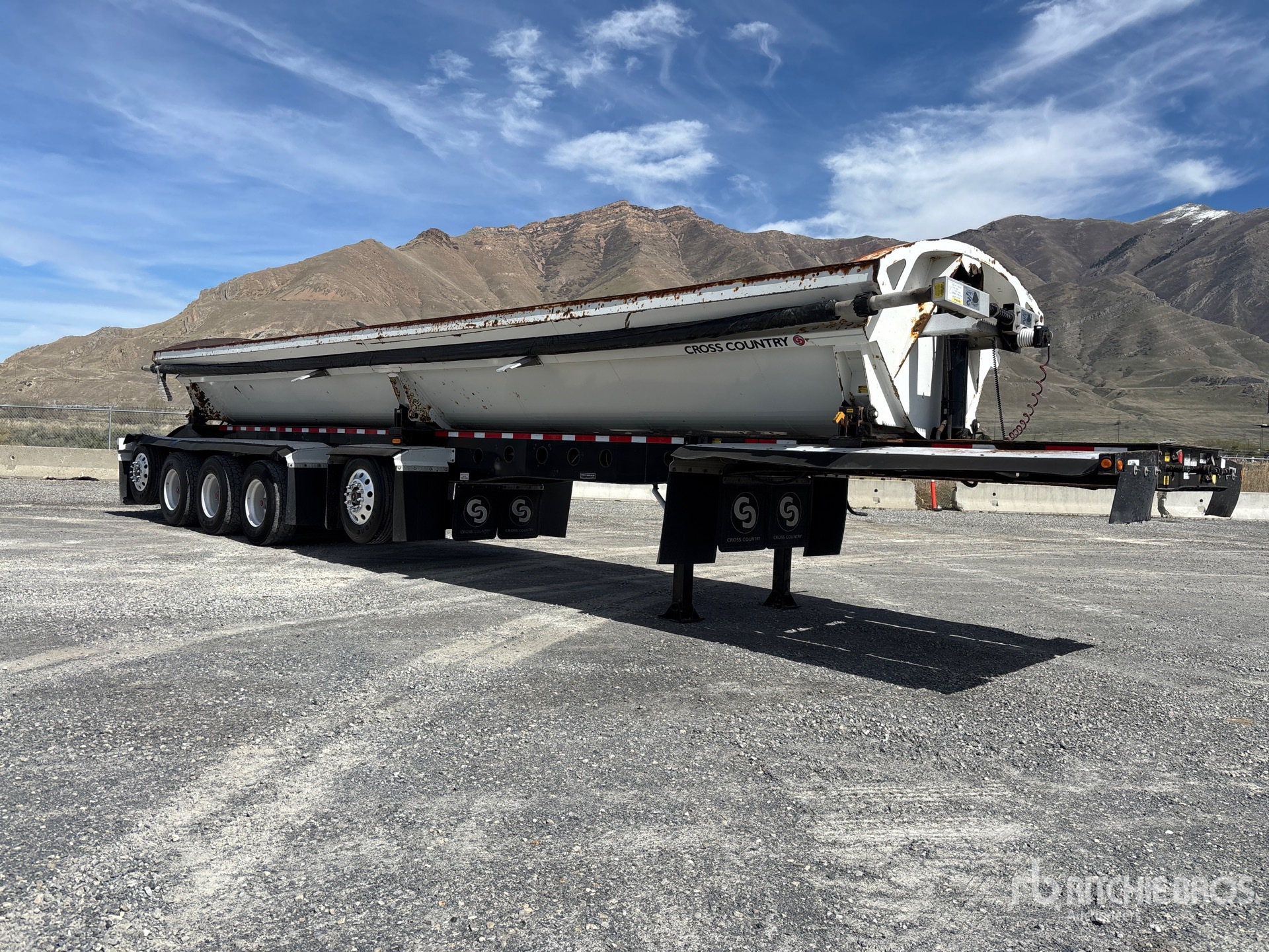 Air Ride Suspension, Air Brakes, Dumps to Both Sides, 48 in Side Walls, Steel Body, Aluminum Wheels, 385/65R22.5 Super Single Tires, 93696 lb GVWR, Electric Lead Tarp, 48 ft Pup Body