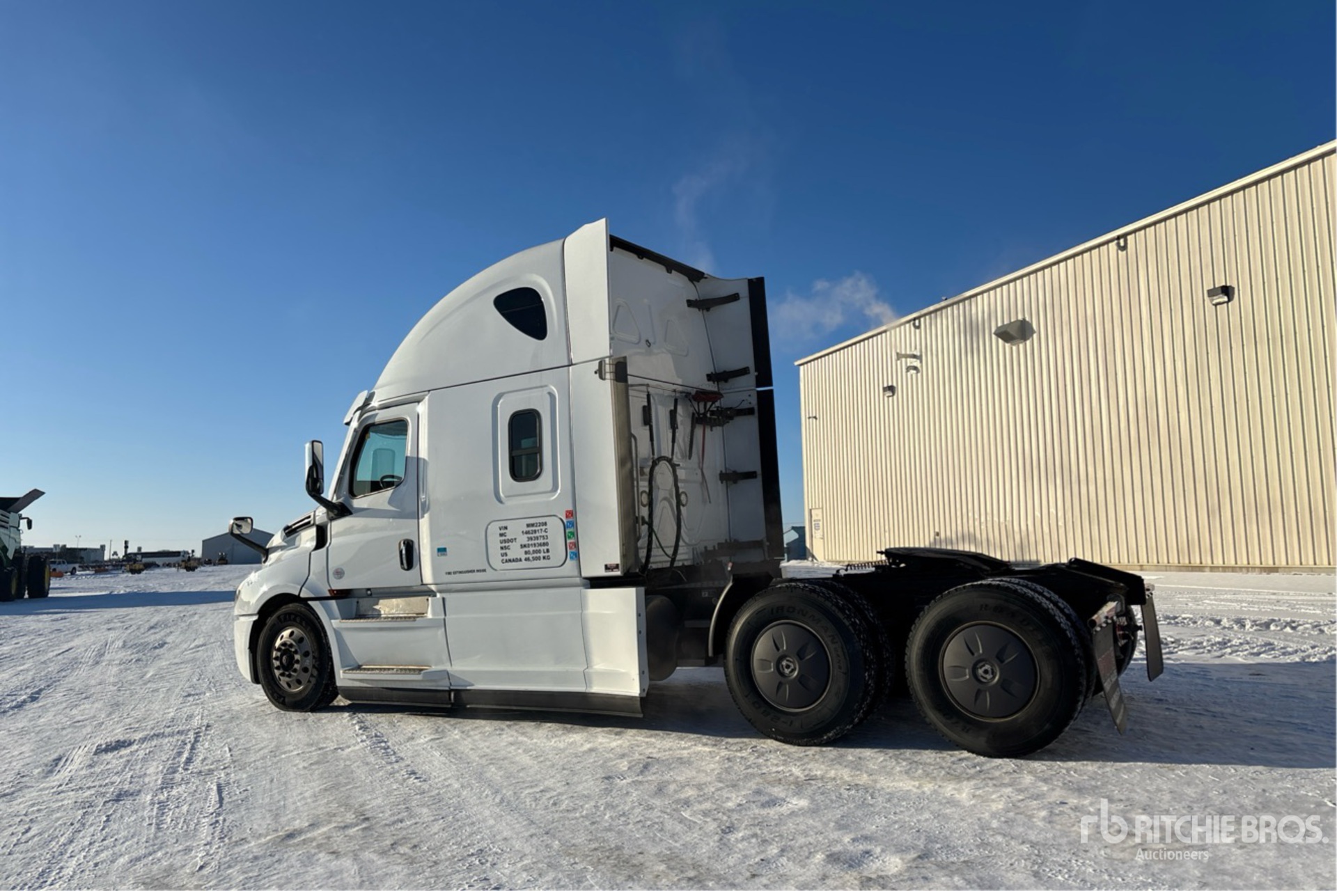 Detroit DD15 505 hp Engine, 17958 Engine hrs, Detroit DT12-1650-OH 12-Speed Automated Transmission, 13220 lb Front Axle, 40000 lb Rears, 53220 lb GVWR, Engine Brake, Double Differential Locks, 60 in High Rise Sleeper Cab, Bunk Beds, Bunk Heater, 229 in Wheelbase, Air Suspension, Aluminum Wheels, 11R22.5, Air Sliding 5th Wheel, Dual Fuel Tanks, "NOTICE-TO-US-BIDDERS: this asset is likely exempt from US import tariffs as it was manufactured in the US. Bidders are responsible for confirming with their customs broker."