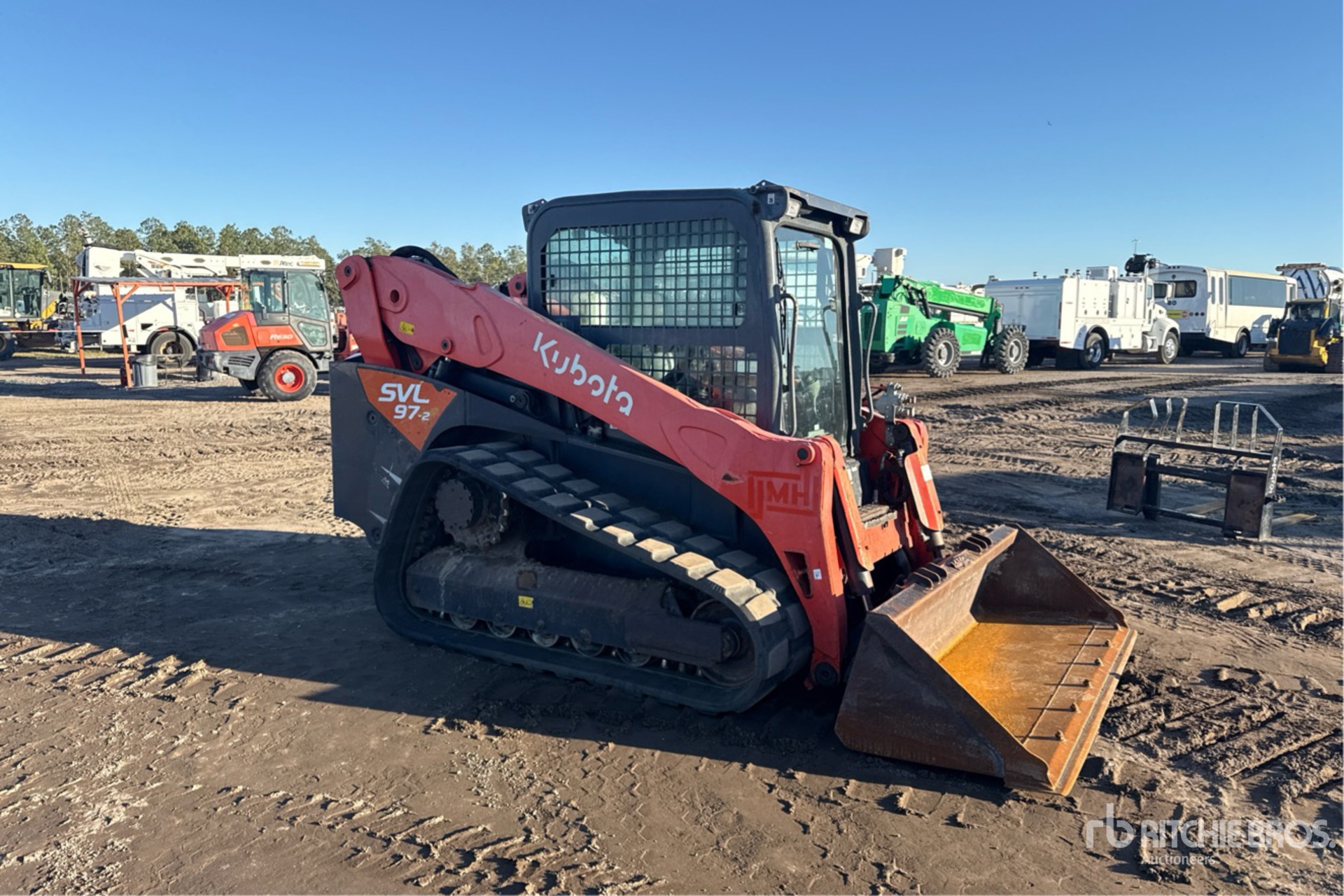 Enclosed Cab, Joystick Steering, Rear View Camera, Tier 4, 2020 US EPA Label, 17.5 in Track Belts, 14 Pin Electric Kit, Manual Coupler, 78 in Bucket, Forks