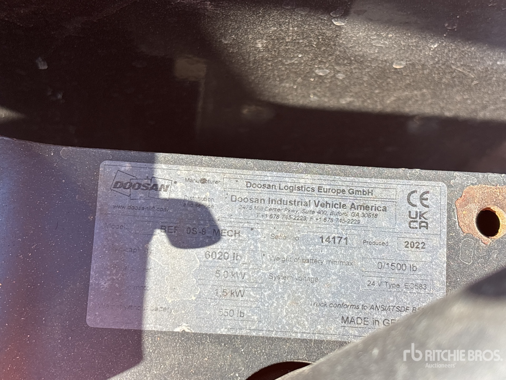 The detailed equipment information is limited in scope, and Ritchie Bros. Auctioneers has not inspected any aspects or components of the equipment other than those expressly set forth herein. Unless expressly stated, we make no representations or warranties, express or implied, concerning the equipment or its components, including without limitation any representations or warranties concerning functionality, conformity or compliance with any safety standard or requirement of any applicable authority or regulatory body, fitness for any particular purpose, or merchantability. You are strongly advised to perform your own detailed inspection of the equipment prior to bidding.