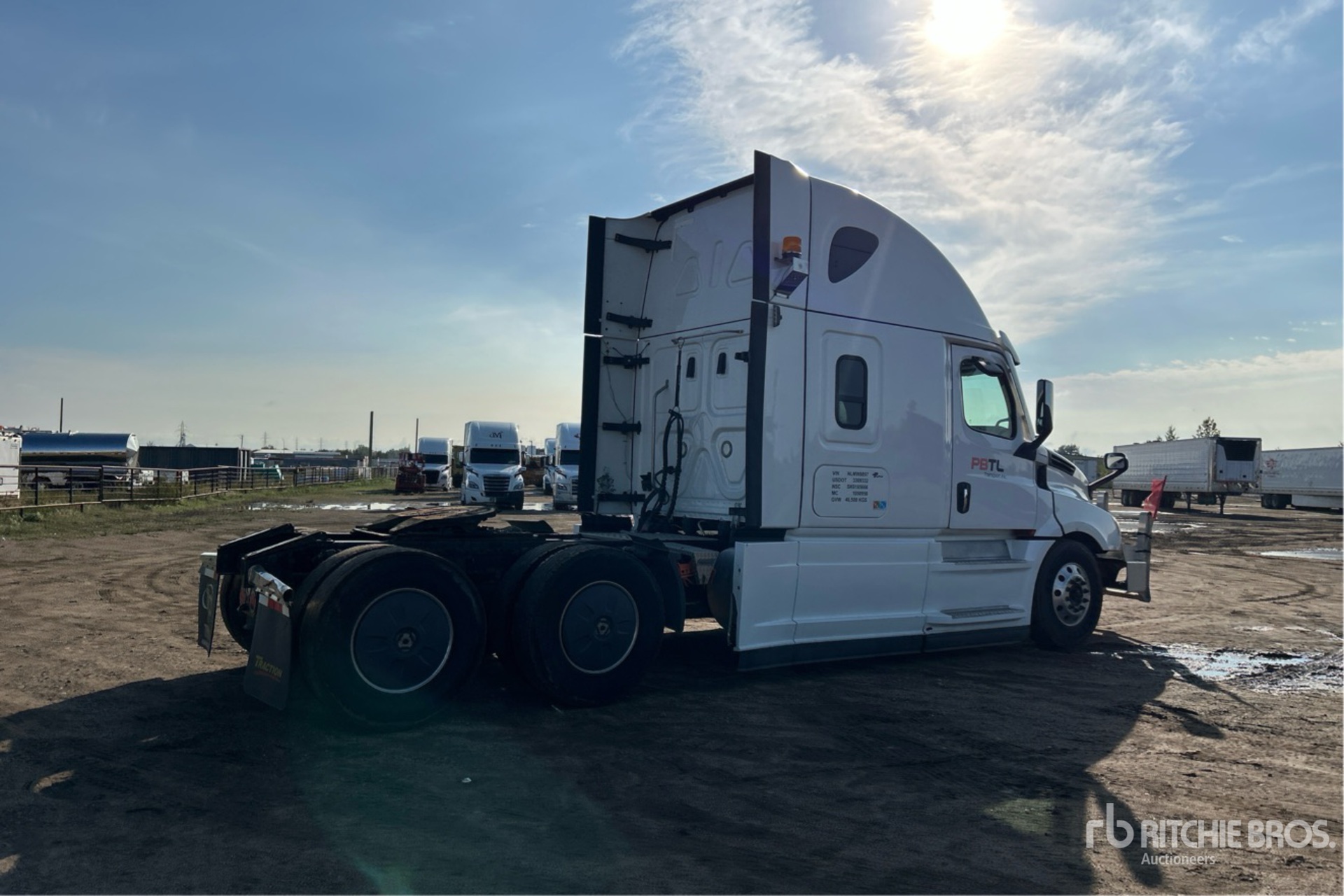 Detroit DD15 505 hp Engine, 2021 US EPA Label, 16556 Engine hrs, Detroit DT12-1650-OH1 12-Speed Automated Transmission, 13220 lb Front Axle, 40000 lb Rears, 53220 lb GVWR, Retarder, Double Differential Locks, 70 in High Rise Sleeper Cab, Bunk Beds, Bunk Heater, 229 in Wheelbase, Aluminum Wheels, 11R22.5, Air Sliding 5th Wheel, Dual Fuel Tanks