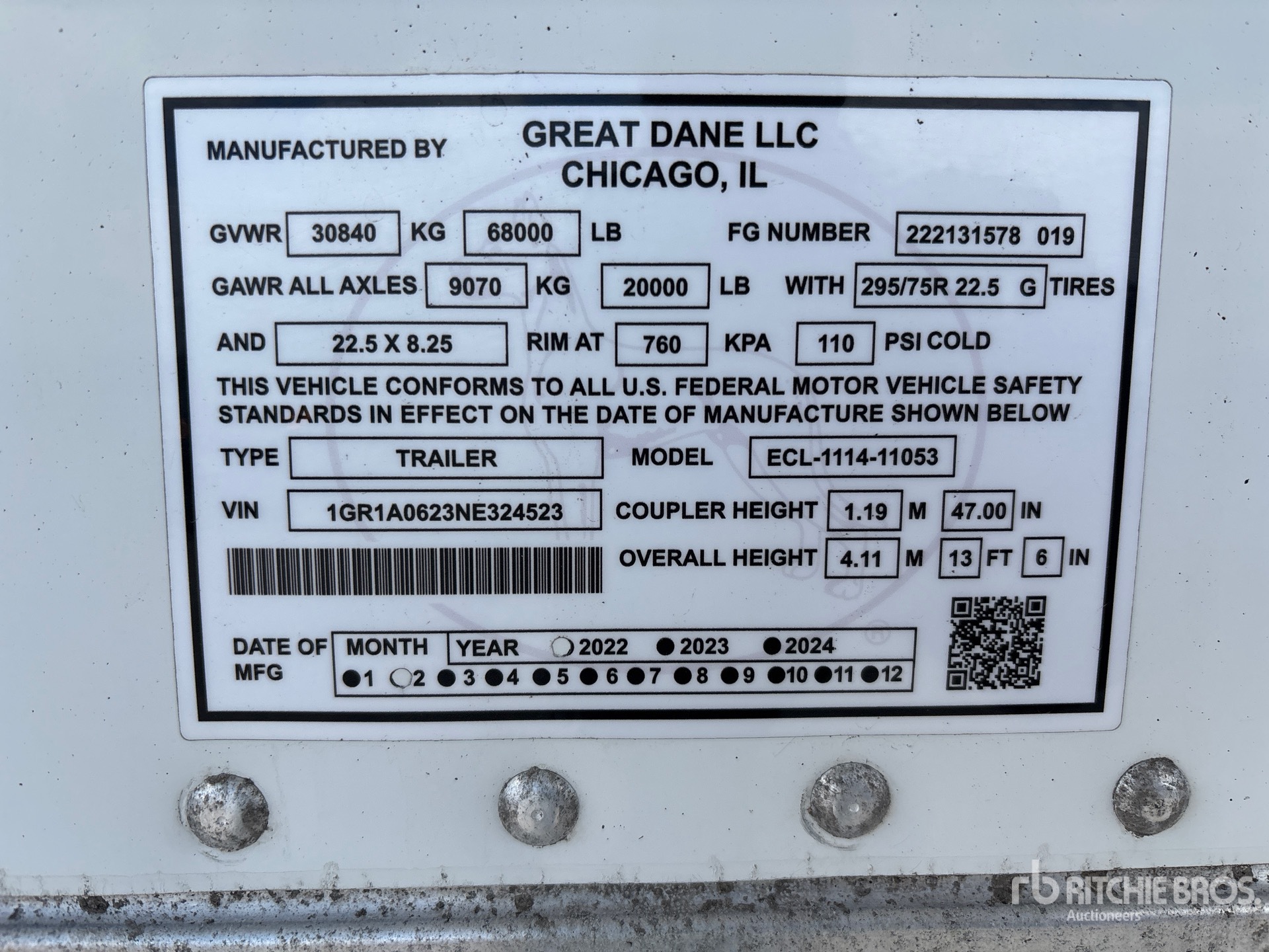 2022 Thermo King Precedent S-700 Refrigeration Unit, Aluminum/Steel Combination Frame, Air Ride Sliding Suspension, Side Skirts, Ducted Floor, Swing Door, 295/75R22.5 Tires 68000 lb GVWR