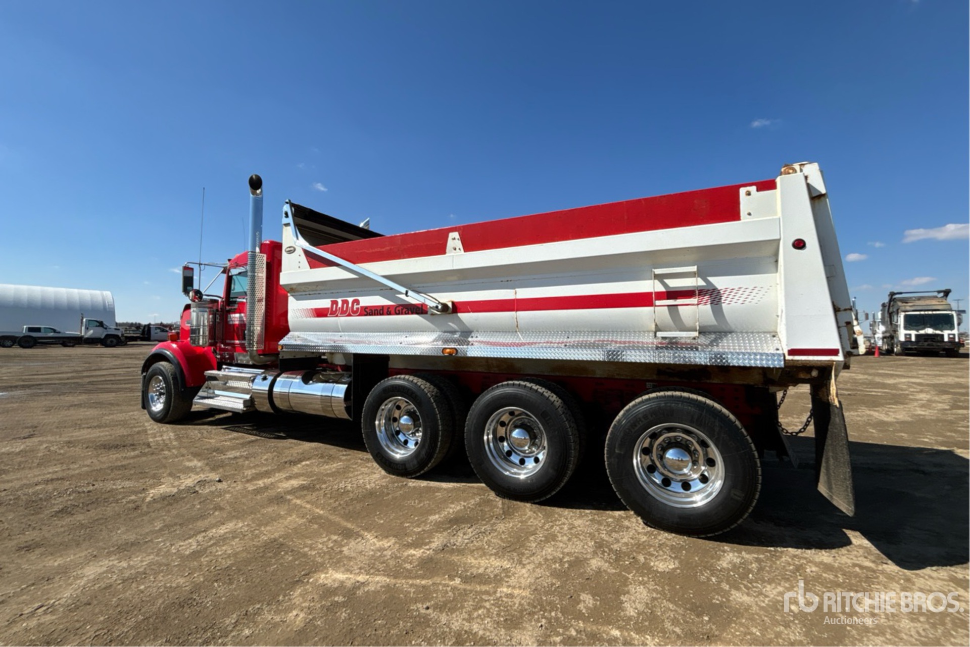 Located in Lane 42 Spot 5, Cummins X15 6 Cylinder 15 L Diesel 565 hp Engine, 2021 US EPA Label, CARB Compliant, Requires Diesel Exhaust Fluid, Positive Air Shutoff, 11106 Engine hrs, Engine Brake, Eaton Fuller 18-Speed Manual Transmission, Triple Differential Locks, 16000 lb Front Axle, 61000 lb Rears, 77000 lb GVWR, Aluminum Wheels, 385/65R22.5 Front Tires, 11R24.5 Rear Tires, Double Frame, Neway Air Ride Suspension, 260 in Wheelbase, PTO, 19 ft Long x 4 ft High Steel Body, Electric Roll Tarp, Rear Hydraulics, Pintle Hitch, Major-Realignment-for-DDC-Sand-Gravel-&-Concrete