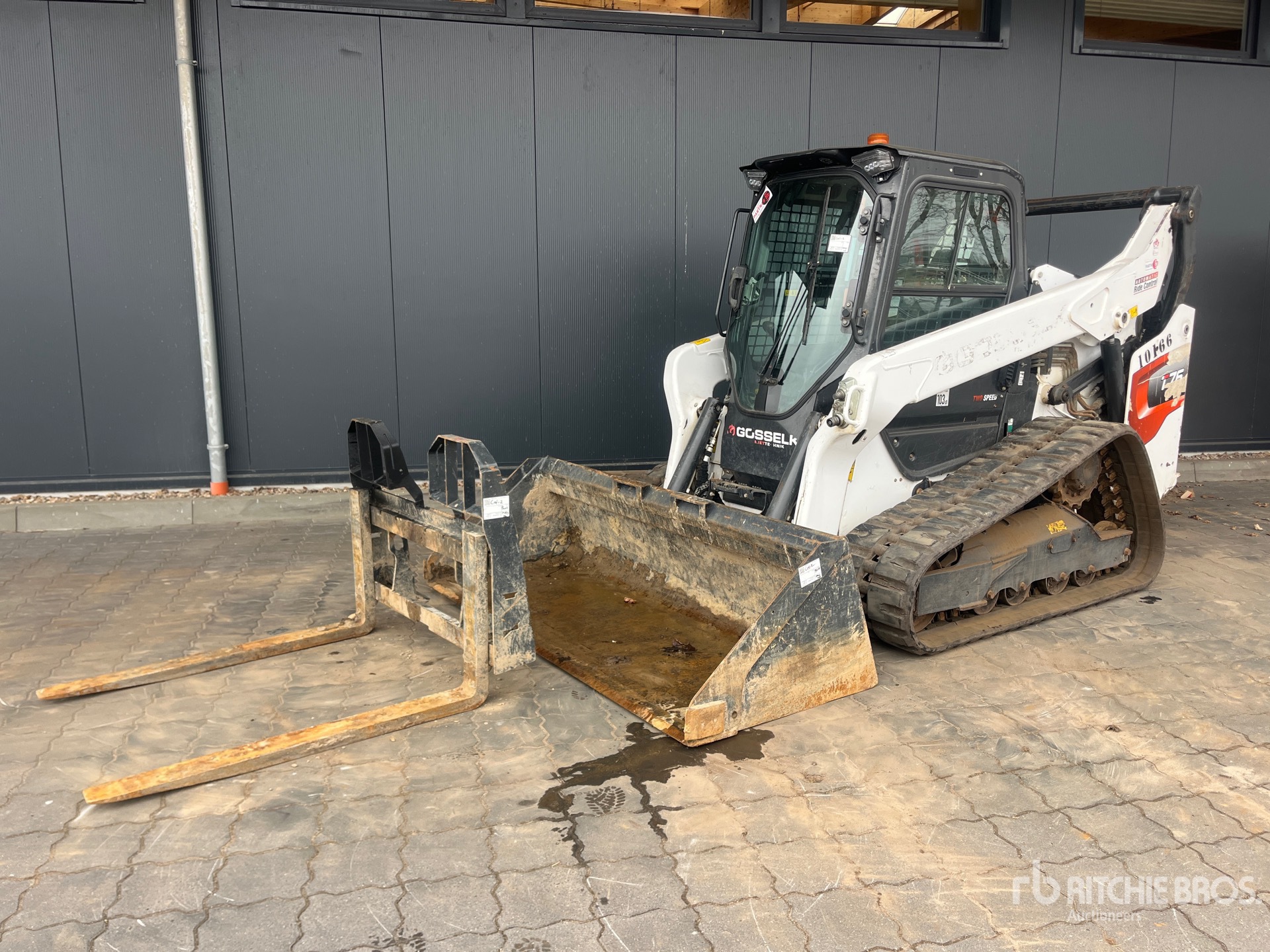 Enclosed Cab, Air Conditioner, Ride Control, Creep Mode, Joystick Steering, Control Pattern Changer, Self Leveling, Rear View Camera, 400 mm Track Belts, Hydraulic Coupler, 2110 mm Bucket, Forks