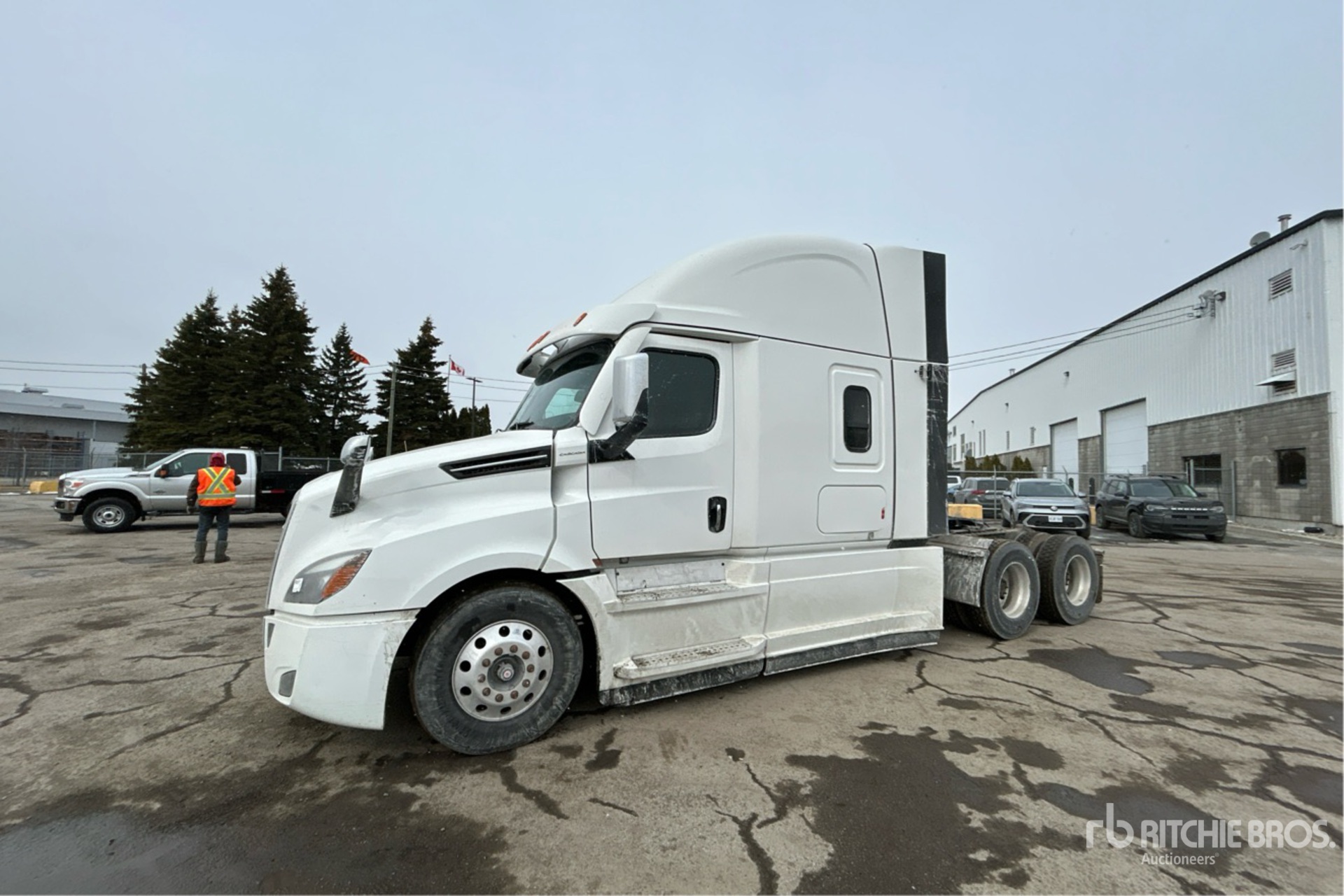 Detroit DD15 505 hp Engine, 2022 US EPA Label, 5083 Engine hrs, Detroit DT12-1750-OH1 12-Speed Automated Transmission, 13220 lb Front Axle, 40000 lb Rears, 53220 lb GVWR, Engine Brake, Double Differential Locks, 60 in Condo Sleeper Cab, 233 in Wheelbase, Air Suspension, Aluminum Wheels, 11R22.5, Air Sliding 5th Wheel, Dual Fuel Tanks