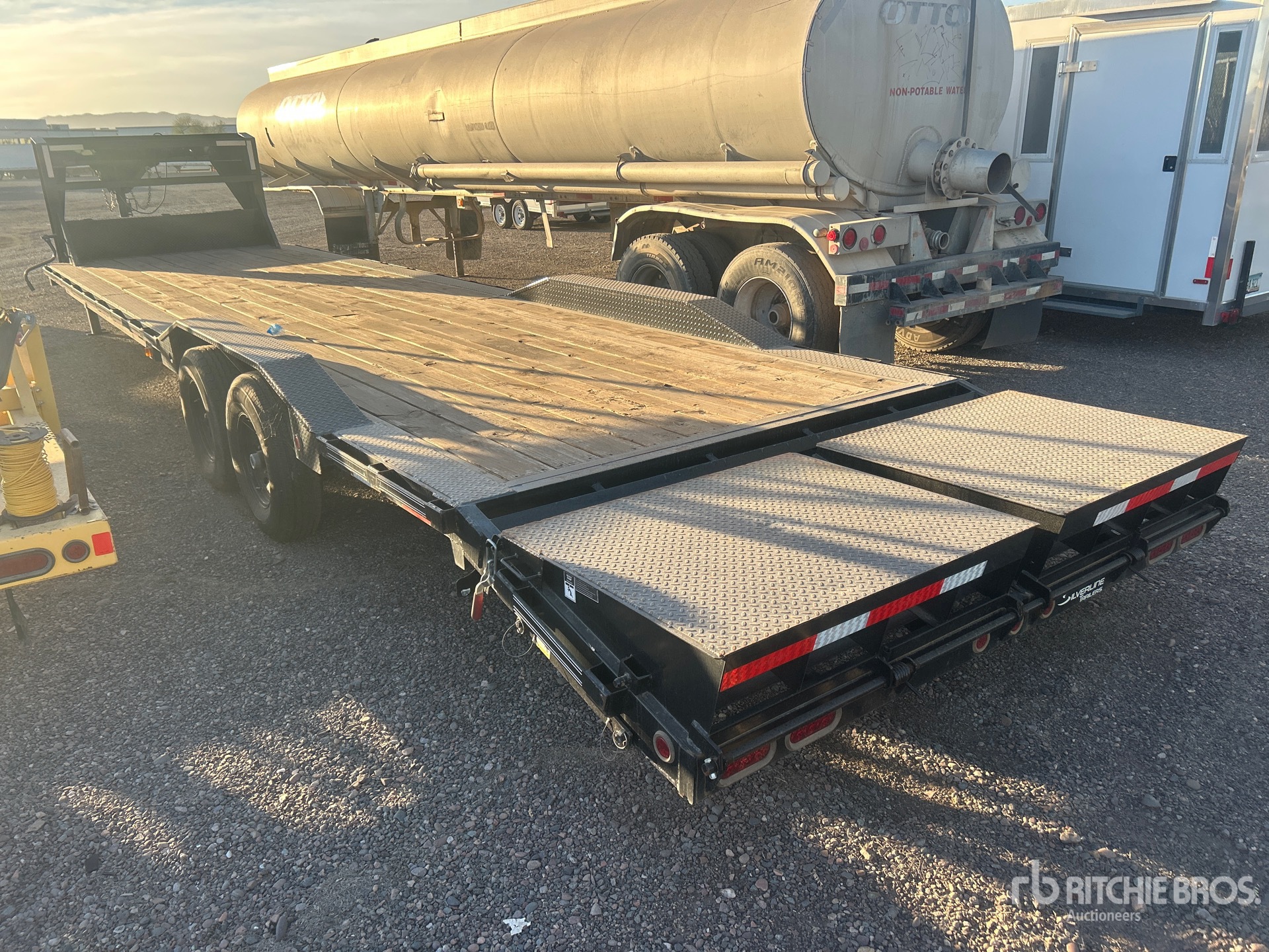 Spring Suspension, Electric Brakes, 29 ft 5 in Main Deck, 3 ft 9 in Fixed Dovetail, 96 in Usable Deck Width, 101 in Overall Deck Width, Spring Assisted Ramps, Wood Flooring, 235/80R16 Tires, 15680 lb GVWR