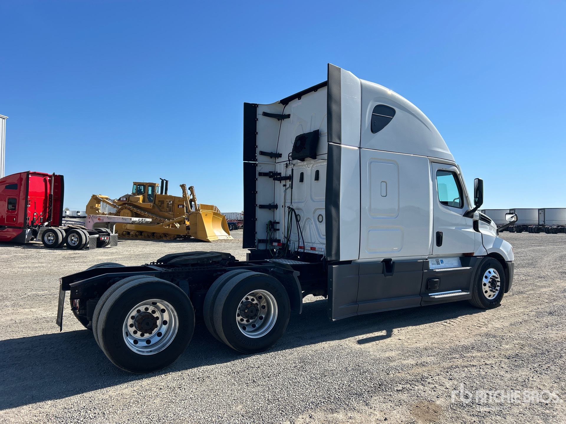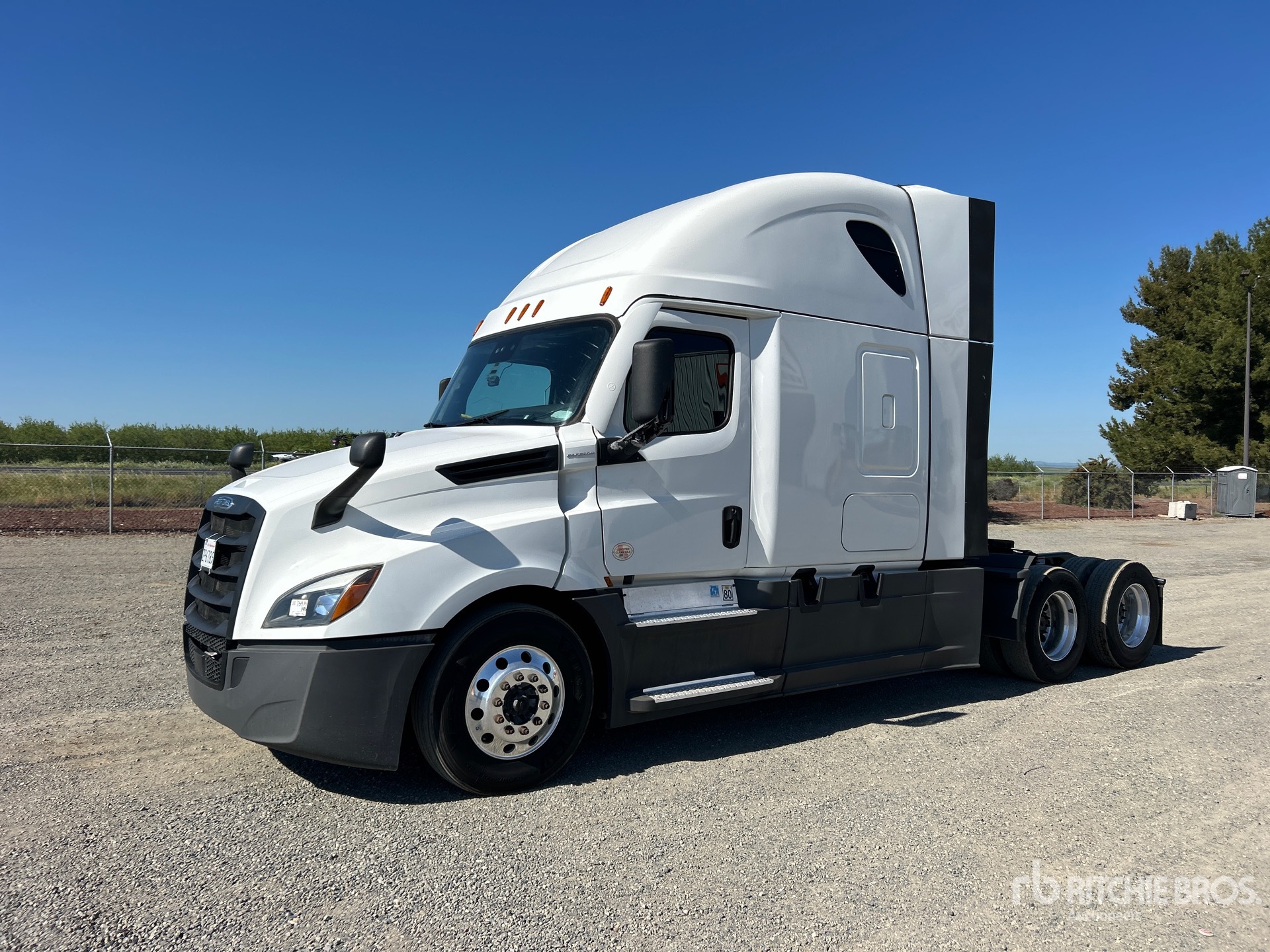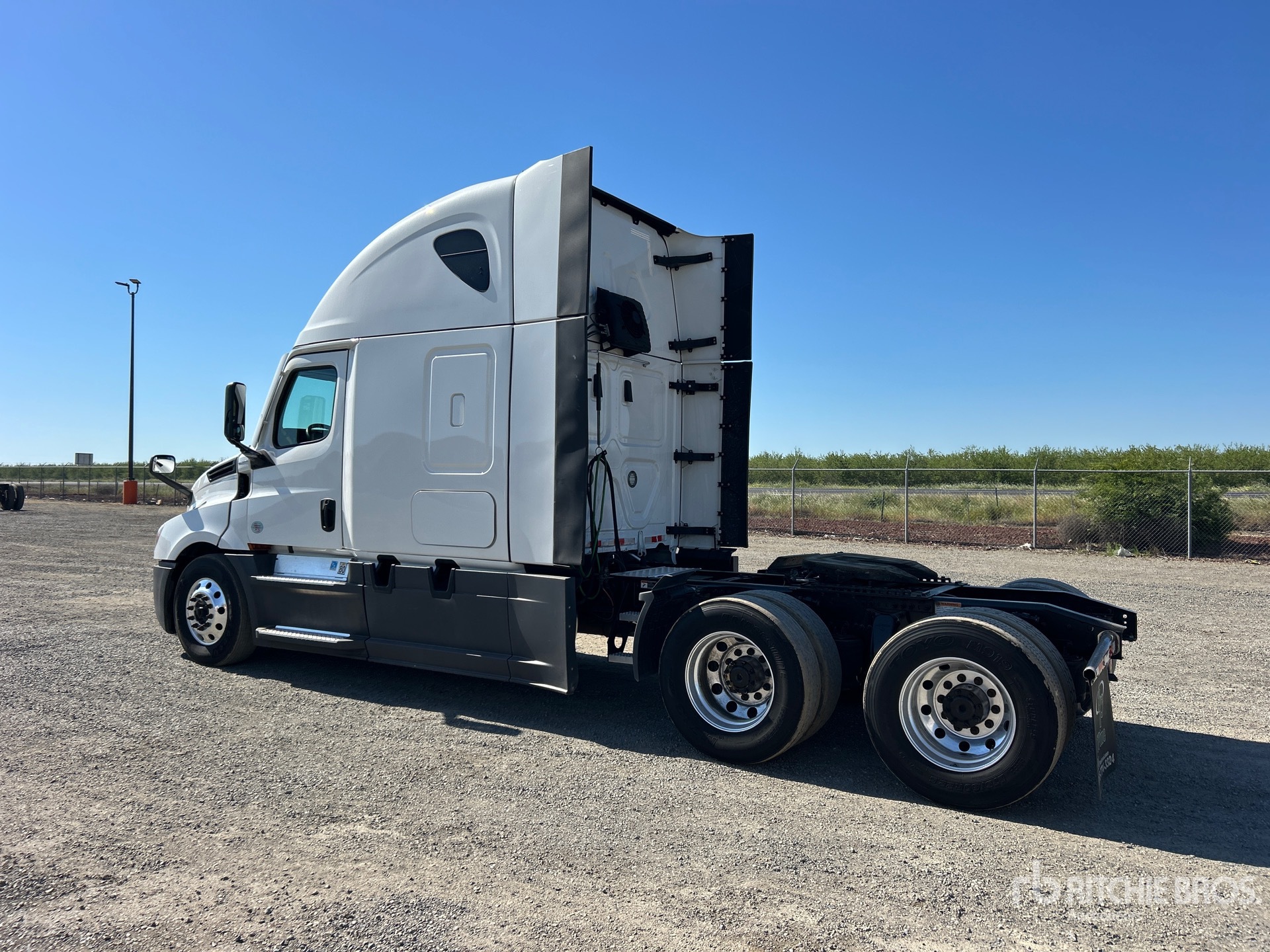 Located in Lane 14 Spot 2, Detroit DD15 455 hp Engine, 2023 US EPA Label, 9876 Engine hrs, Detroit DT12-1750-DH1 12-Speed Automated Transmission, 12350 lb Front Axle, 40000 lb Rears, 52350 lb GVWR, Engine Brake, 70 in High Rise Sleeper Cab, Bunk Beds, Bunk Heater, 229 in Wheelbase, Air Suspension, Aluminum Outer Wheels, 295/75R22.5, Air Sliding 5th Wheel, Dual Fuel Tanks