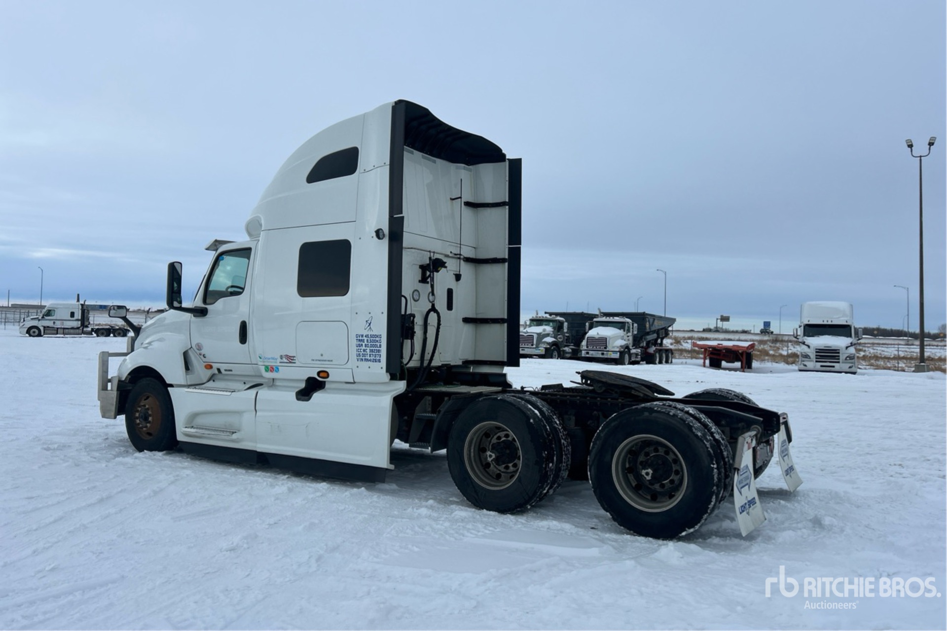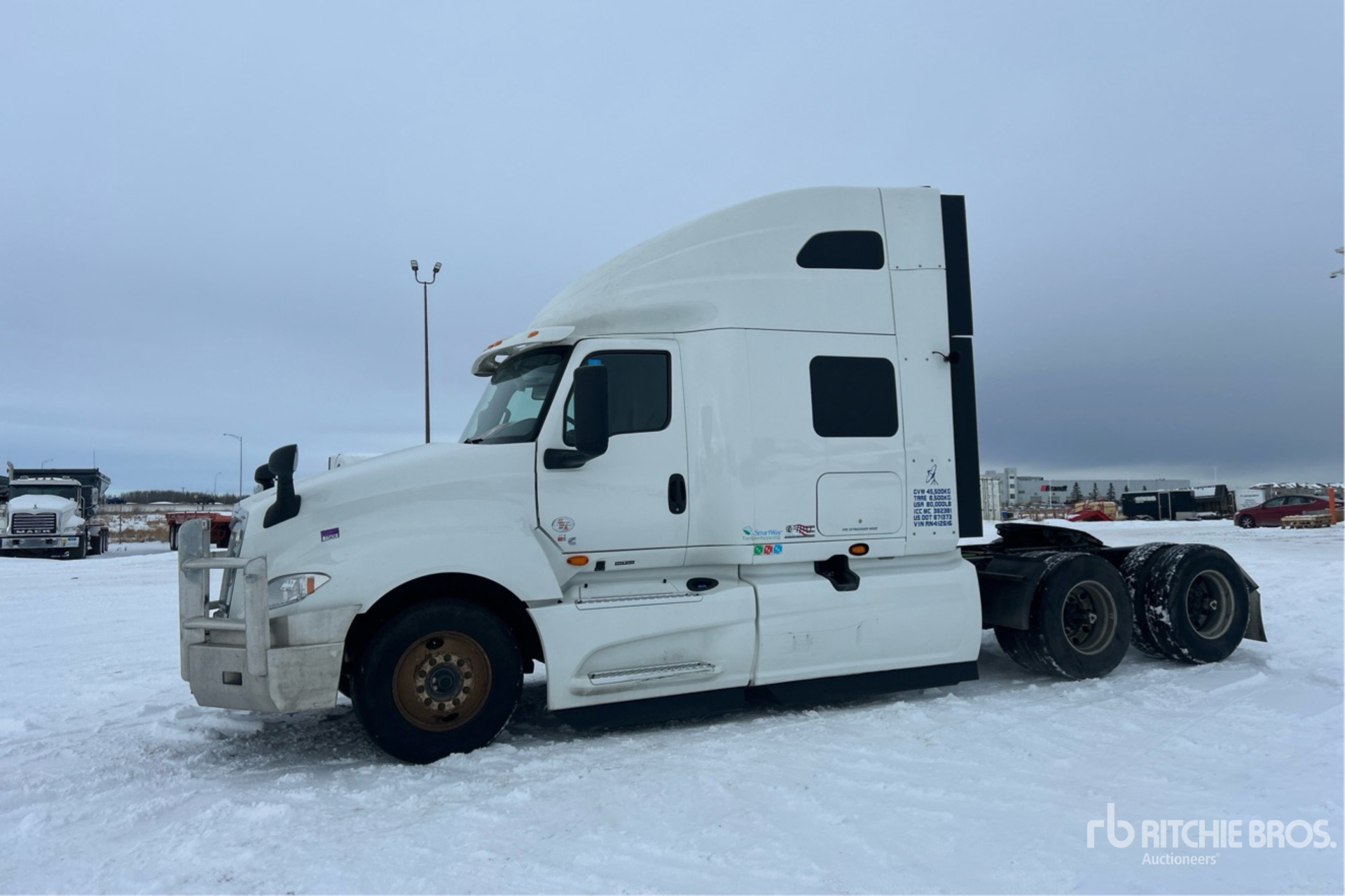 Cummins X15 450 hp Engine, 2023 US EPA Label, 10253 Engine hrs, Automatic Transmission, 13200 lb Front Axle, 40000 lb Rears, 53200 lb GVWR, Engine Brake, Double Differential Locks, 56 in High Rise Sleeper Cab, Bunk Beds, Bunk Heater, 232 in Wheelbase, Air Suspension, Aluminum Rear Wheels, 11R22.5, Air Sliding 5th Wheel, Dual Fuel Tanks