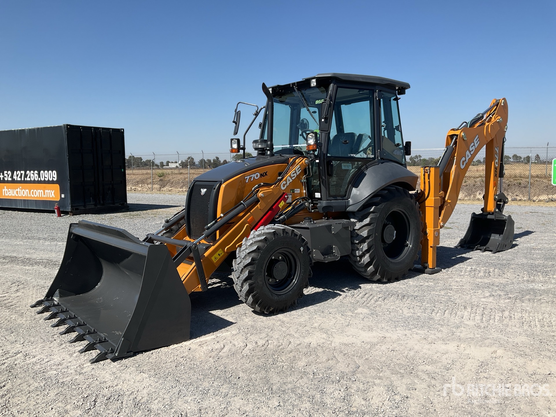 Enclosed Cab, 88 in Loader Bucket, Side Shift, 29 in Backhoe Digging Bucket, DPF System / Cabina, Cucharon Cargador 88 in, Desplazamiento Lateral, Cucharon Retroexcavador 29 in, Con Sistema de Regeneracion DPF