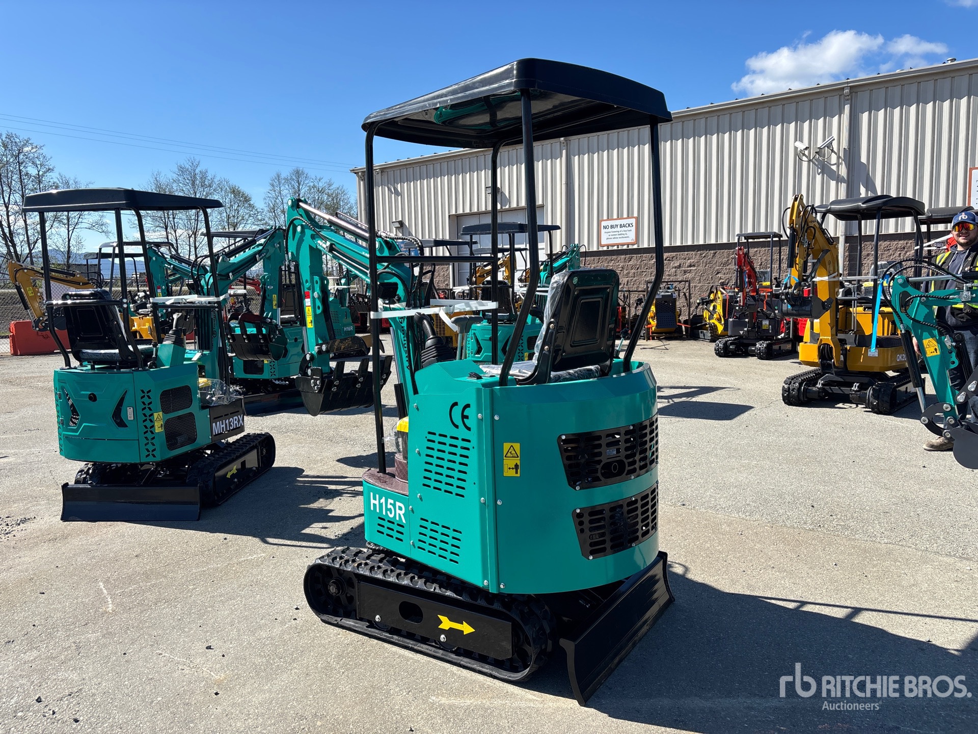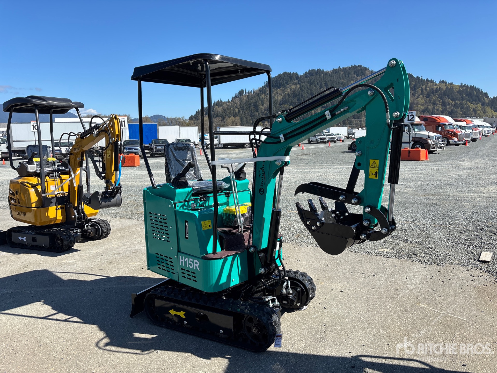 2025 US EPA Label, 3 ft 2 in Stick, Auxiliary Hydraulic Plumbing, Backfill Blade, 7 in Rubber Tracks, 16 in Digging Bucket, Manual Thumb, Item is new/unused