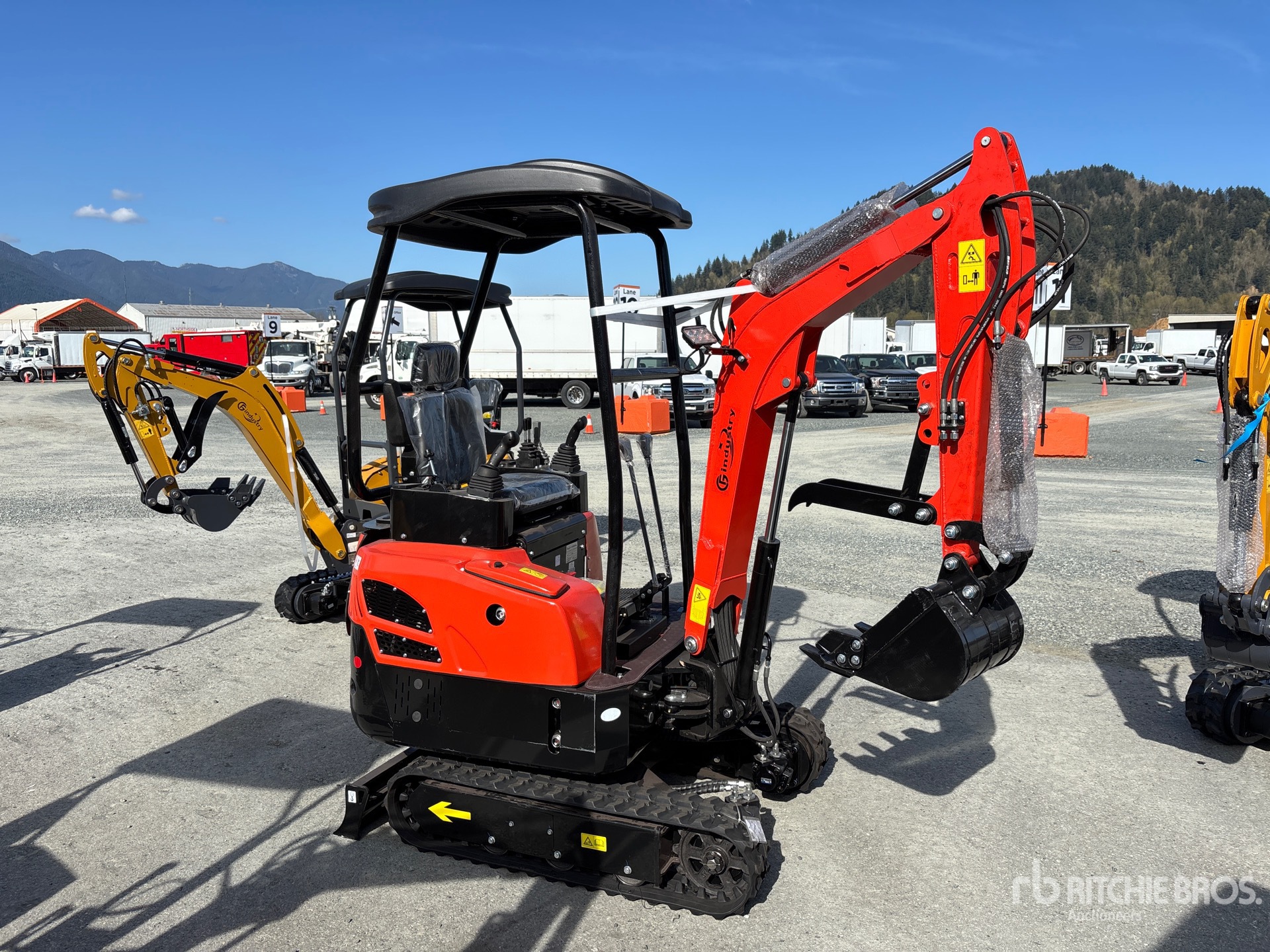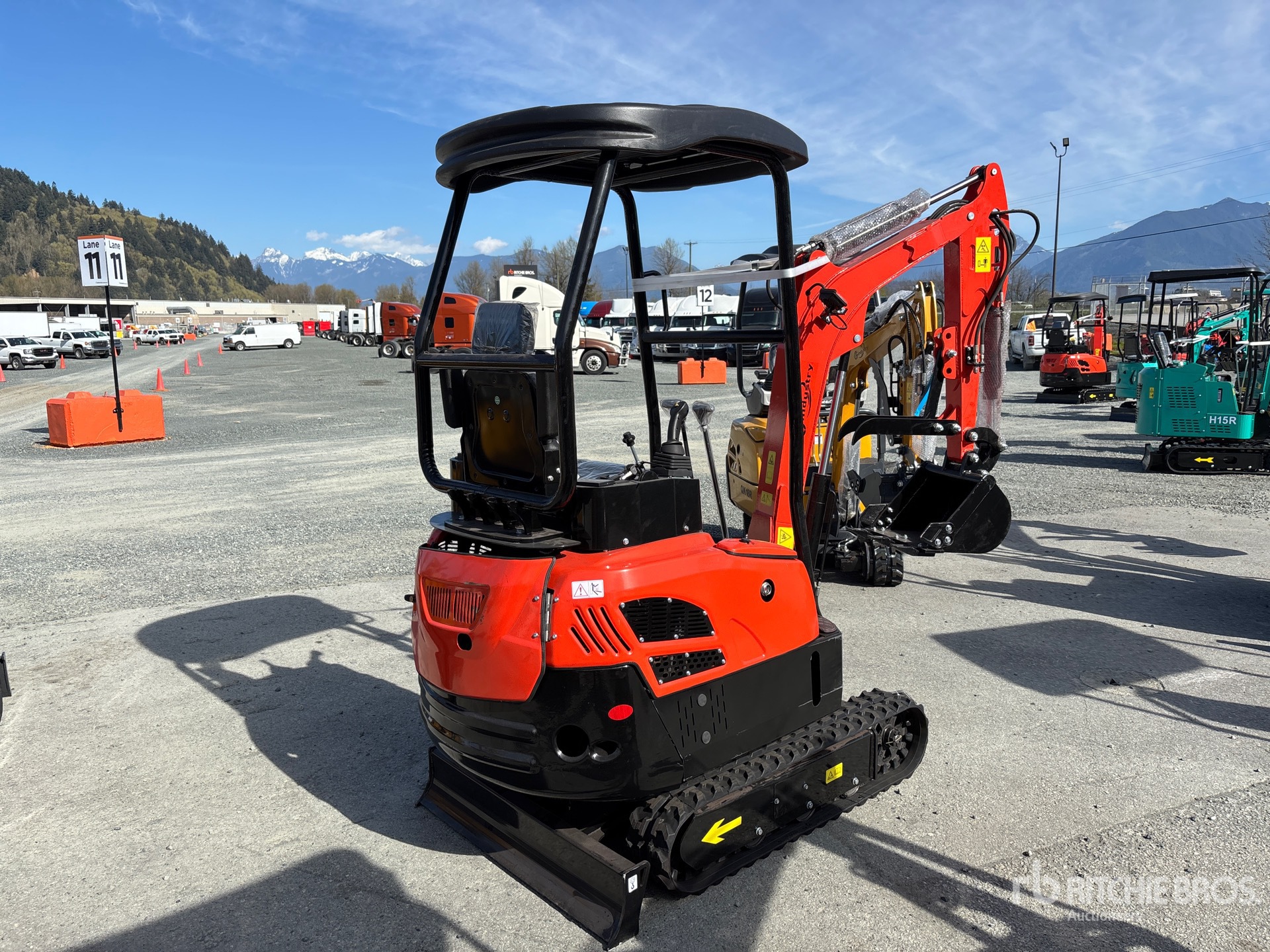 2025 US EPA Label, Swing Boom, 3 ft 10 in Stick, Auxiliary Hydraulic Plumbing, Backfill Blade, 7 in Rubber Tracks, 14 in Digging Bucket, Manual Thumb, Item is new/unused