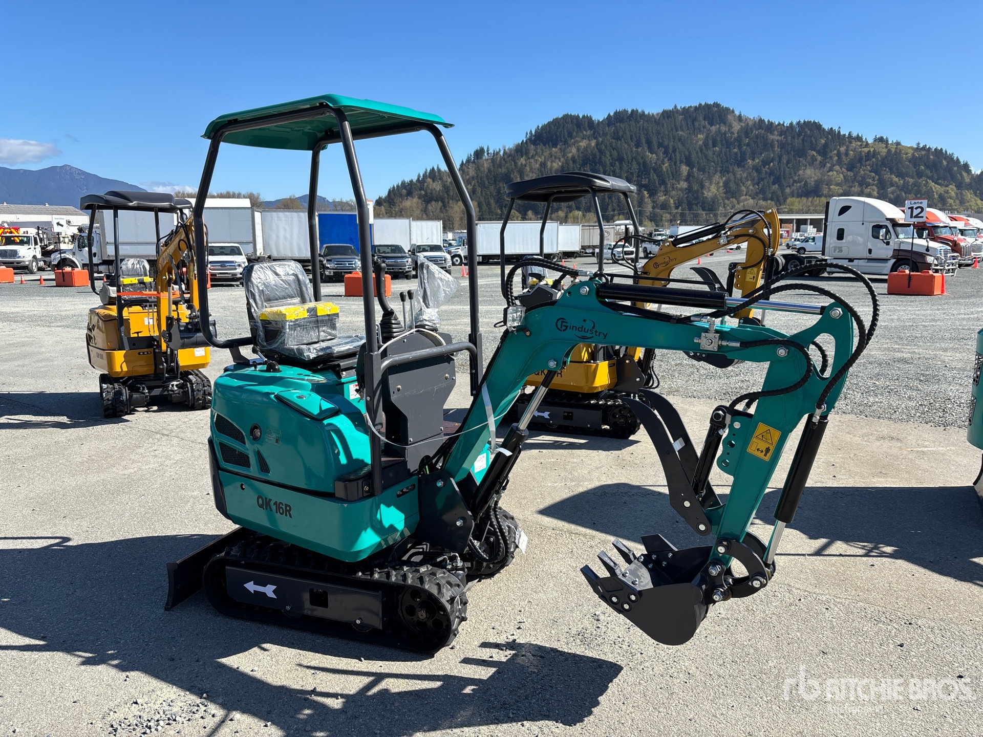 2025 US EPA Label, 3 ft Stick, Backfill Blade, 7 in Rubber Tracks, 14 in Digging Bucket, Hydraulic Thumb