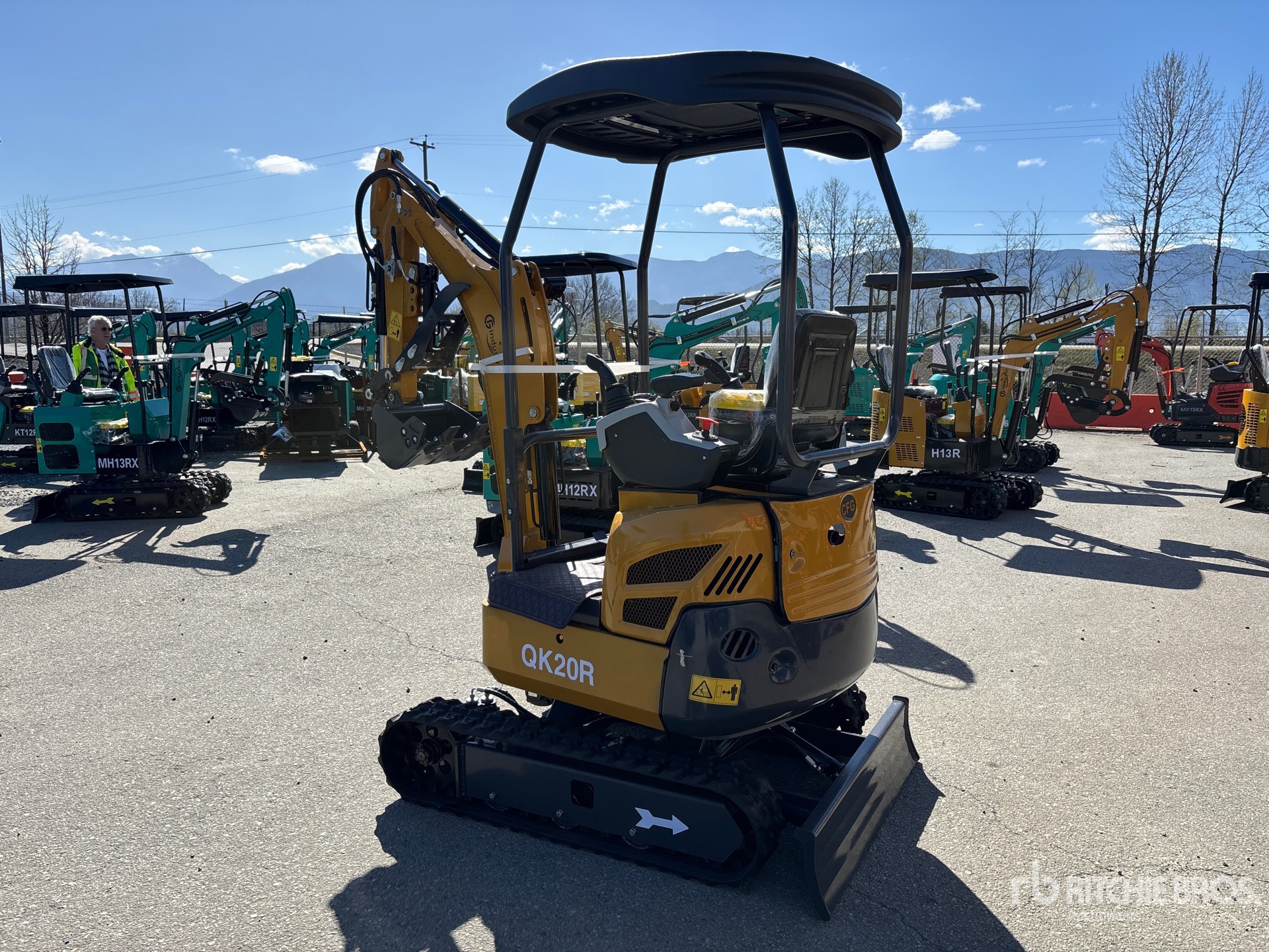 2025 US EPA Label, 3 ft Stick, Backfill Blade, 7 in Rubber Tracks, 14 in Digging Bucket, Manual Thumb