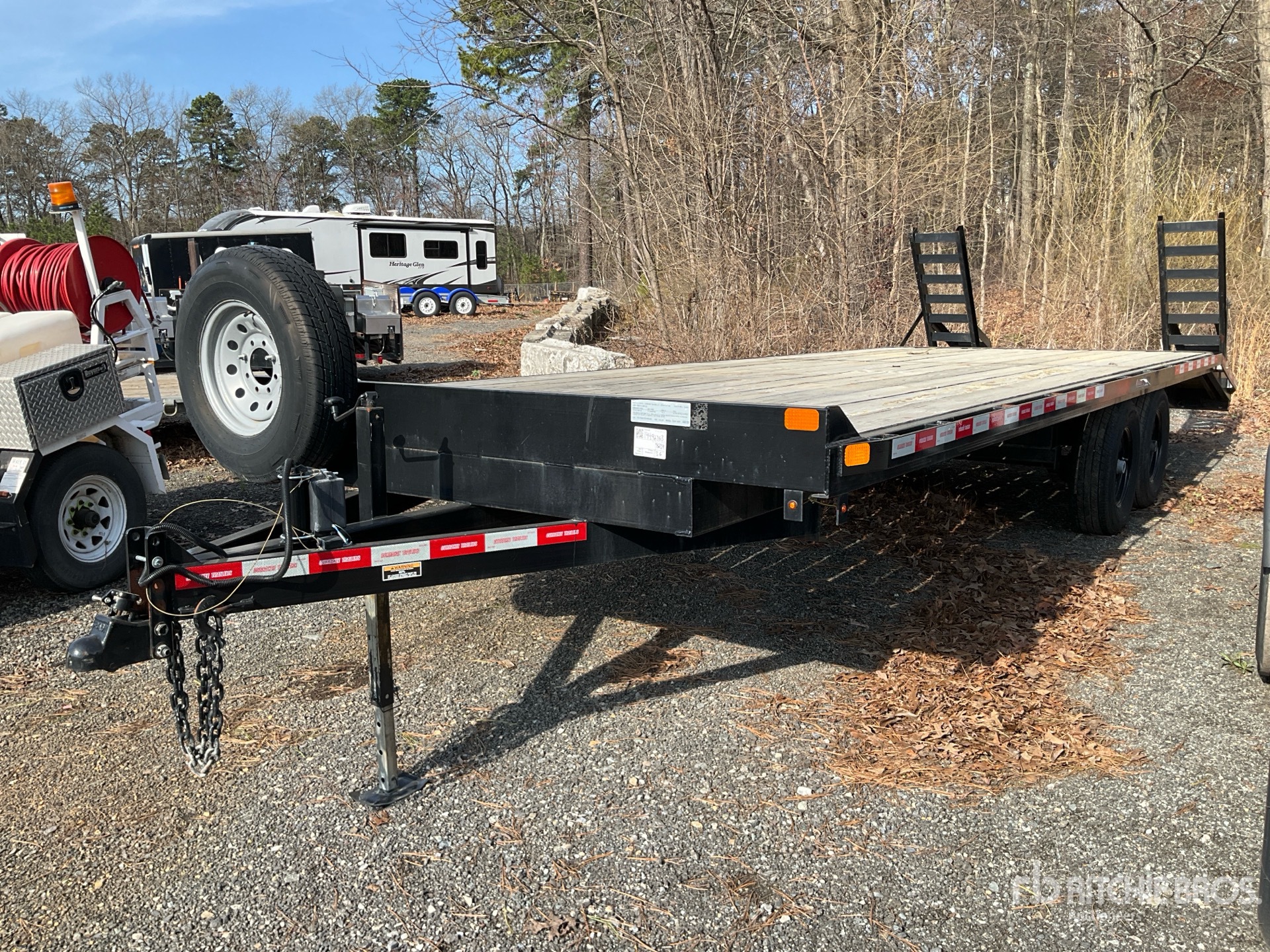 Ball Hitch, Spring Suspension, Surge Brakes, 20 ft Main Deck, 4 ft Fixed Dovetail, 95 in Usable Deck Width, 101 in Overall Deck Width, Deck Over Tires, Manual Ramps, Wood Flooring, 235/80R16 Tires, 14000 lb GVWR