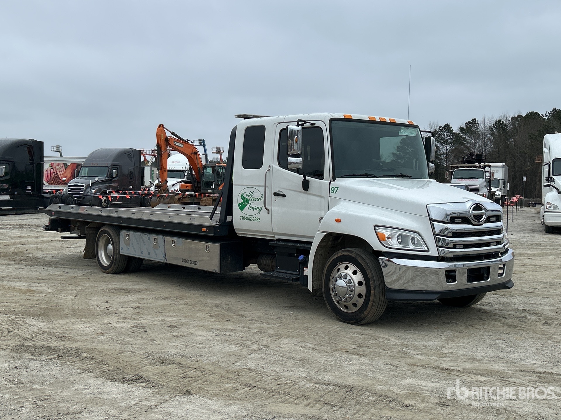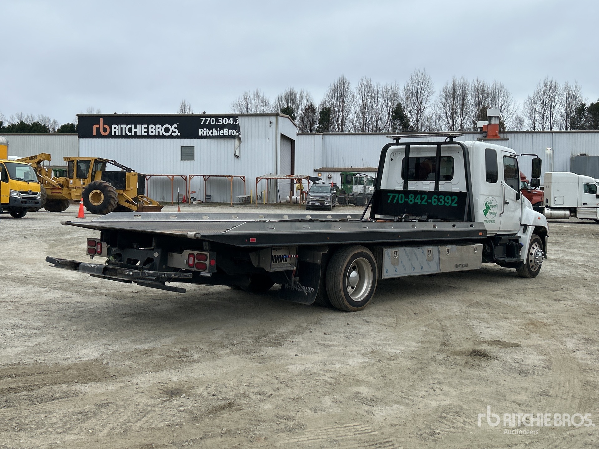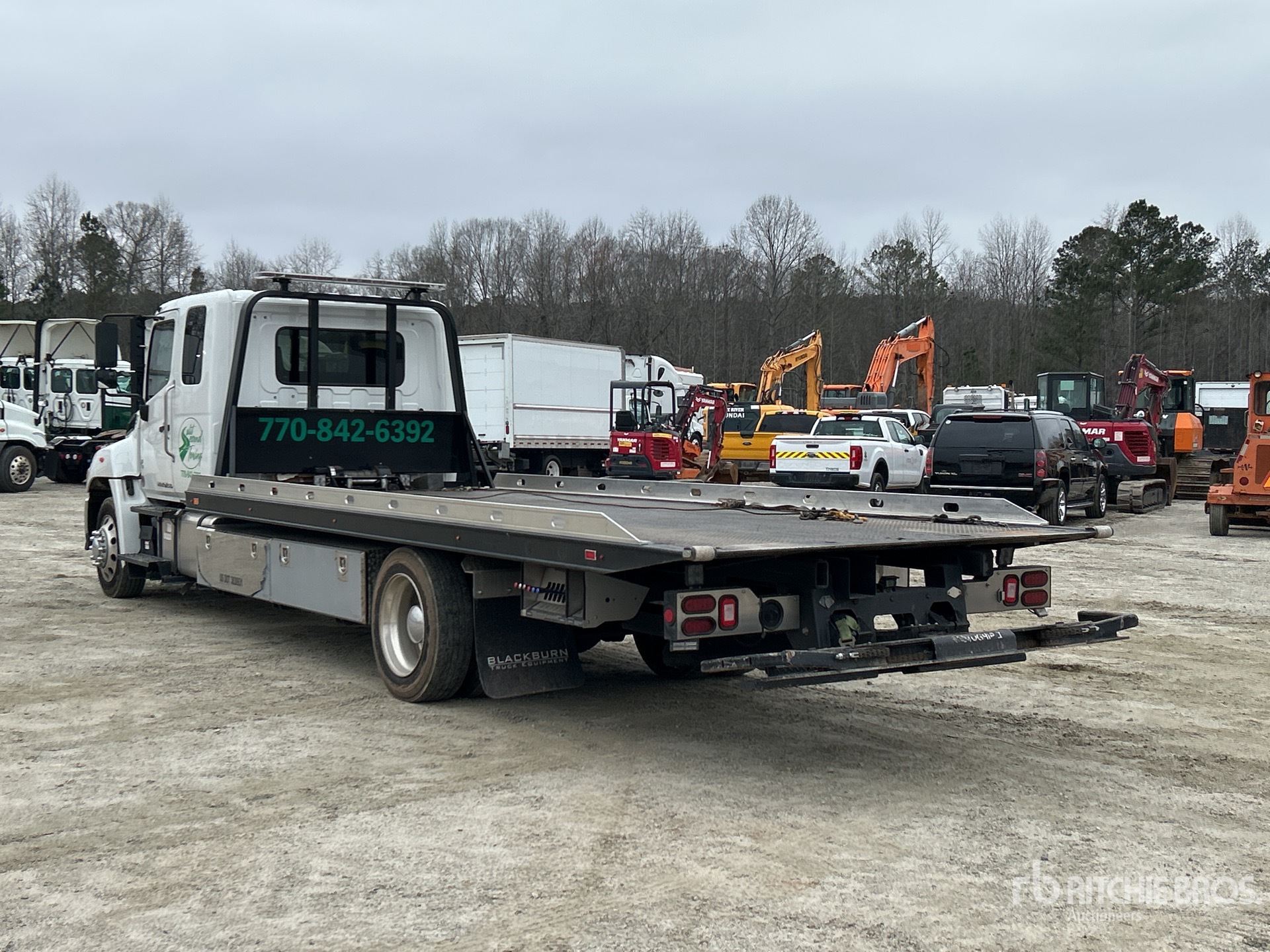 Cummins B6.7 6 Cylinder 6.7 L Diesel 260 hp Engine, 2024 US EPA Label, Requires Diesel Exhaust Fluid, 2506.1 Engine hrs, Automatic Transmission, 10000 lb Front Axle, 19000 lb Rears, 25950 lb GVWR, Aluminum Outer Wheels, 255/70R22.5 Front Tires, 255/70R22.5 Rear Tires, Hendrickson Air Ride Suspension, 242 in Wheelbase, PTO, CENTURY Rollback Body, 21 ft 6 in x 102 in Bed, Ramsey HD234 8000 lb Winch, Hydraulic Wheel Lift