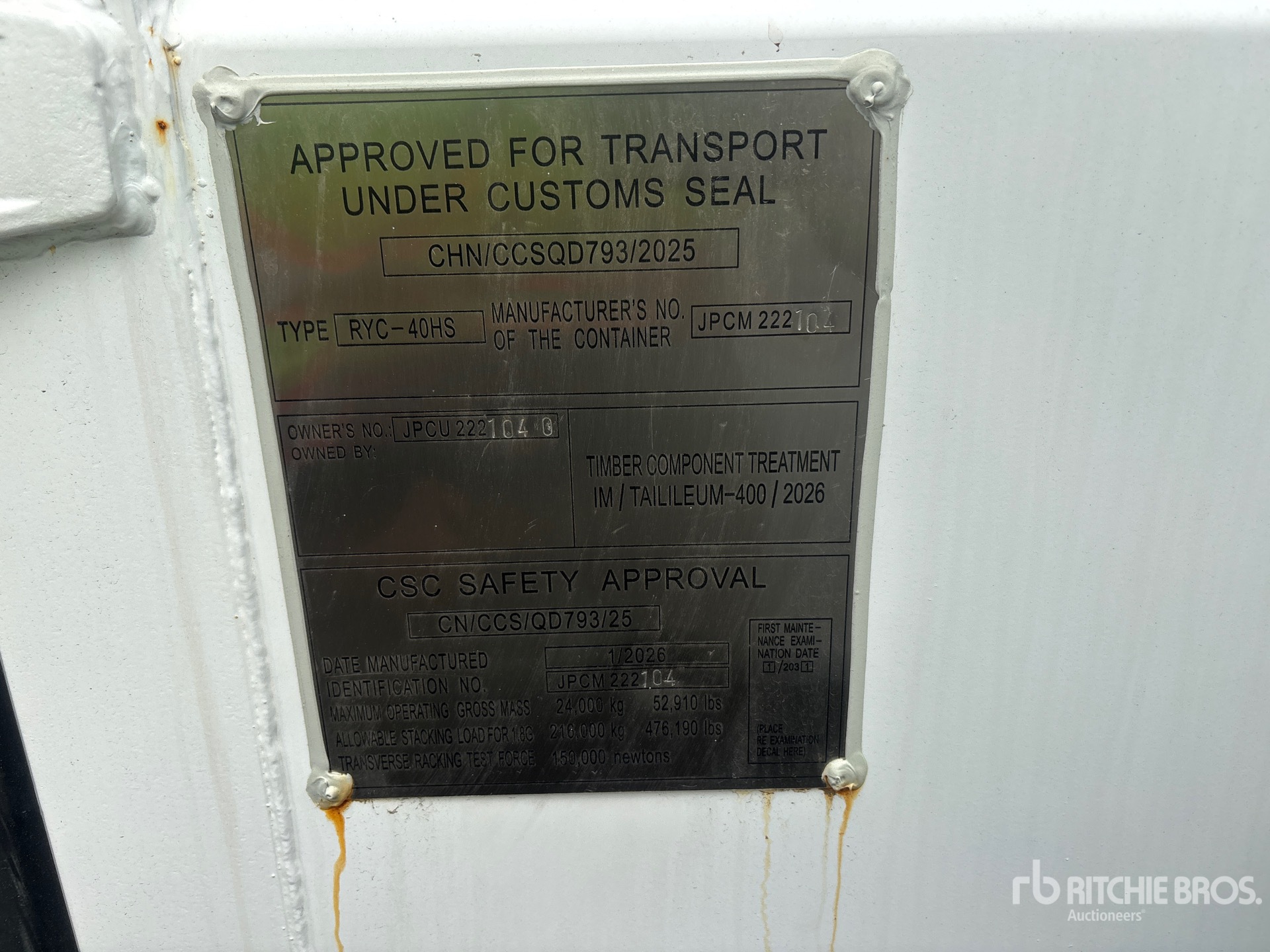 A qualified Ritchie Bros. employee collected detailed equipment information and performed functional tests on the key components of this asset. You, or a proxy, may also inspect any items on site prior to bidding on auction day.