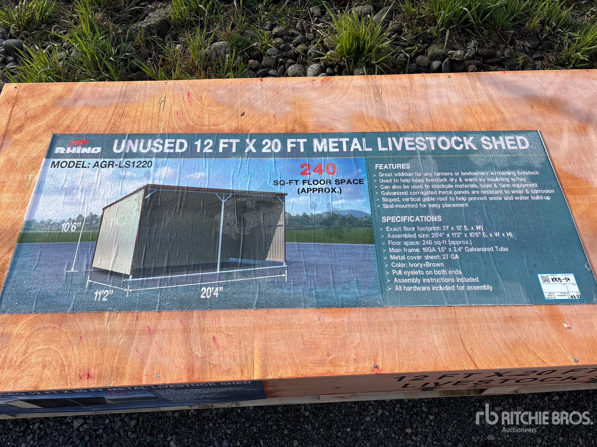 2026 AGR-LS1220 20 ft x 12 ft x 10 ft 6 in Metal Livestock Shelter (Unused)