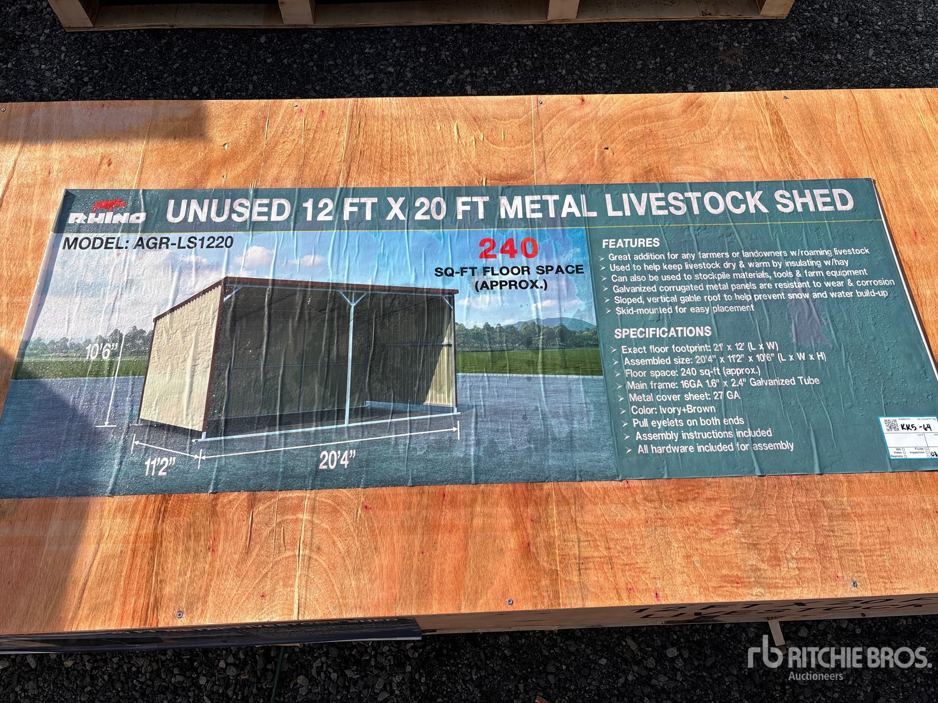 2026 AGR-LS1220 20 ft x 12 ft Livestock Shelter (Unused)