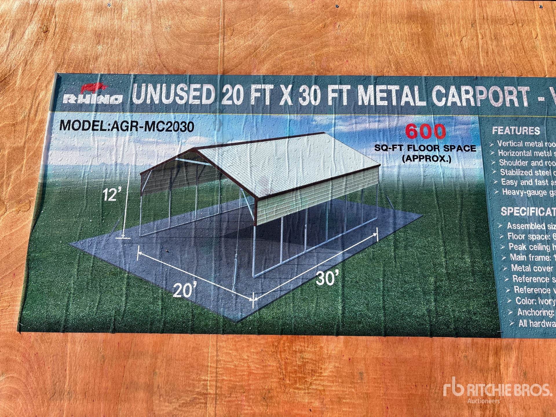 2026 AGR-MC2030 20 ft x 30 ft x 12 ft Steel Carport (Unused)