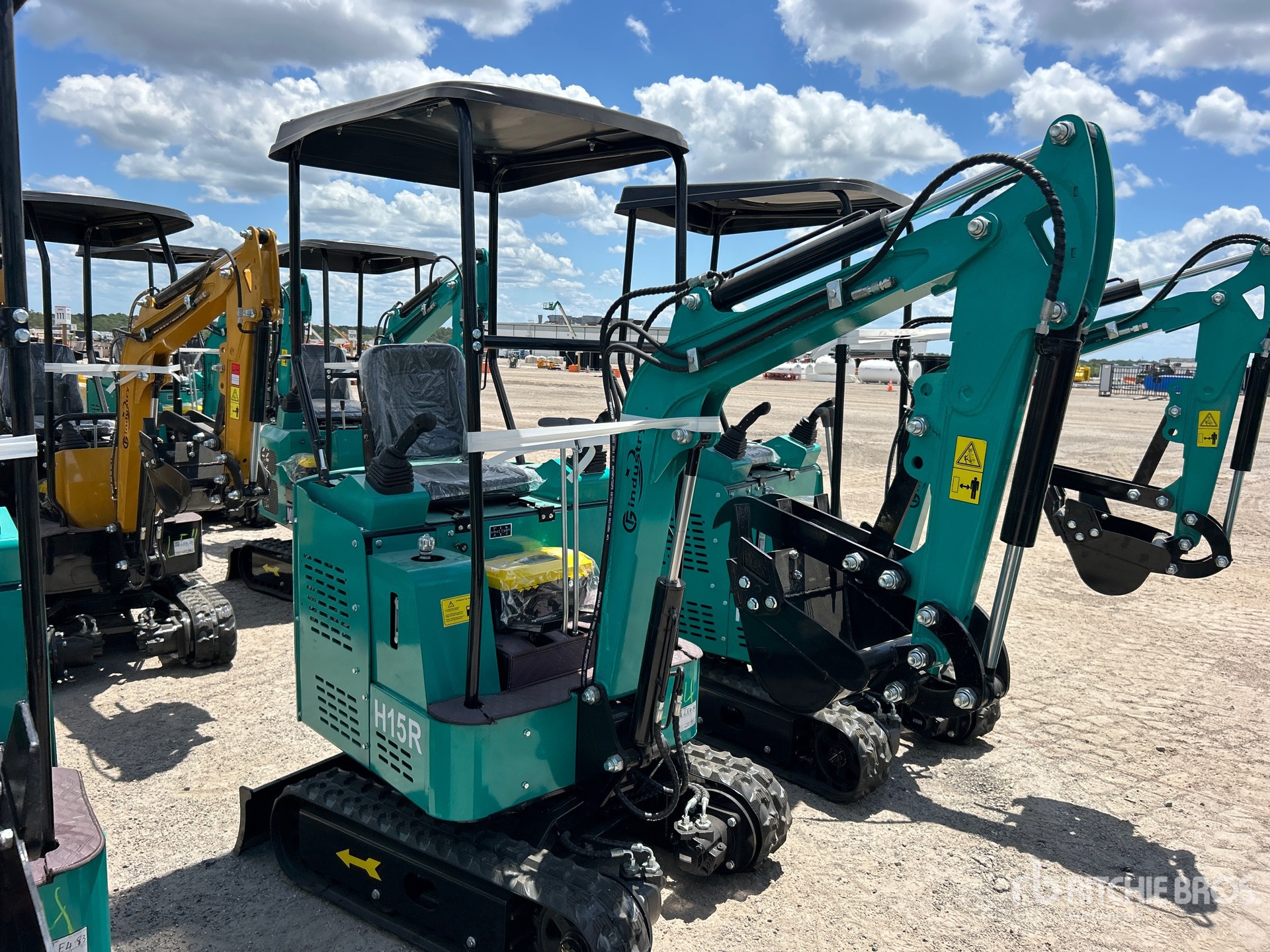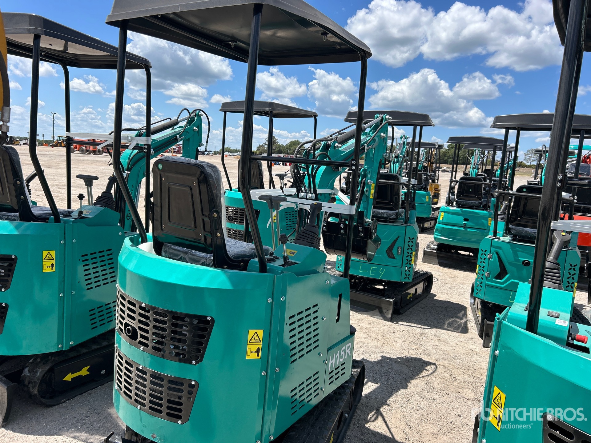 Located in Lane 112 Spot 2, 2025 US EPA Label, 2 ft 7 in Stick, Auxiliary Hydraulic Plumbing, Backfill Blade, 7 in Rubber Tracks, 16 in Digging Bucket, Manual Thumb