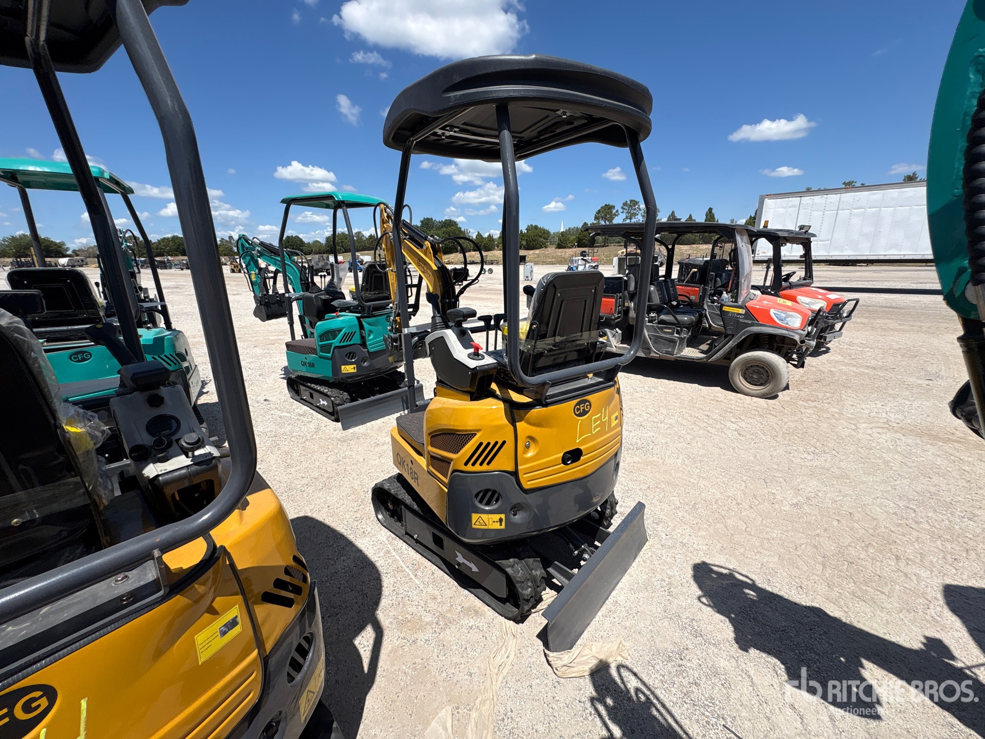 Located in Lane 112 Spot 2, 2025 US EPA Label, 2 ft 7 in Stick, Auxiliary Hydraulic Plumbing, Backfill Blade, 7 in Rubber Tracks, 15 in Digging Bucket, Hydraulic Thumb